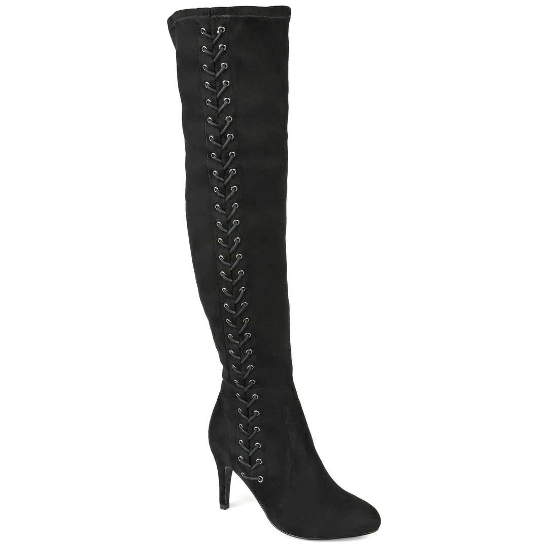 In this wide-calf boot with a lace-up accent and a stiletto heel, you can instantly serve up vixen vibes.
