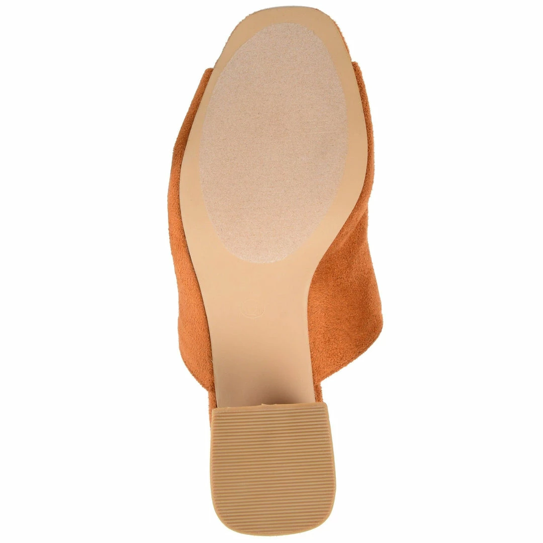 Slip into a peep-toe mule shaped with velvety soft vegan suede uppers resting on a chic covered block heel.