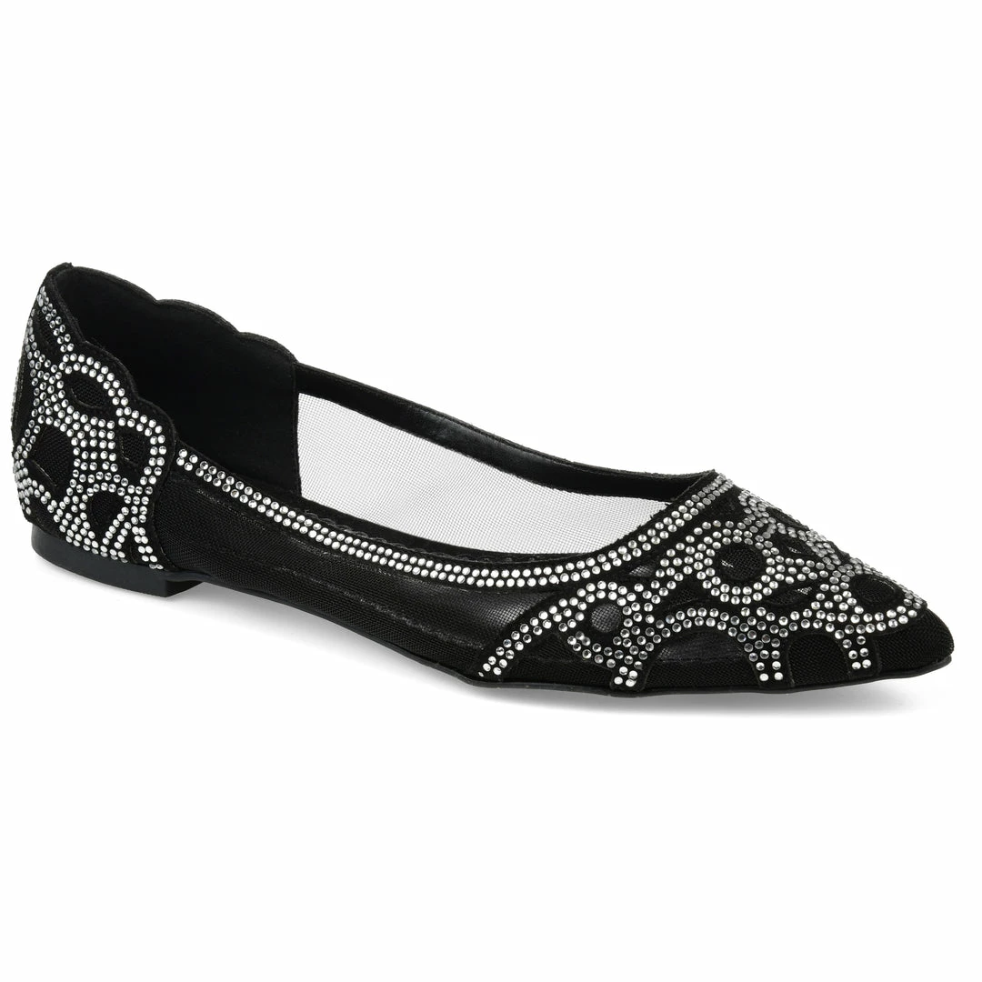 This jeweled art-deco design has the class of a heel and the comfort of a flat.