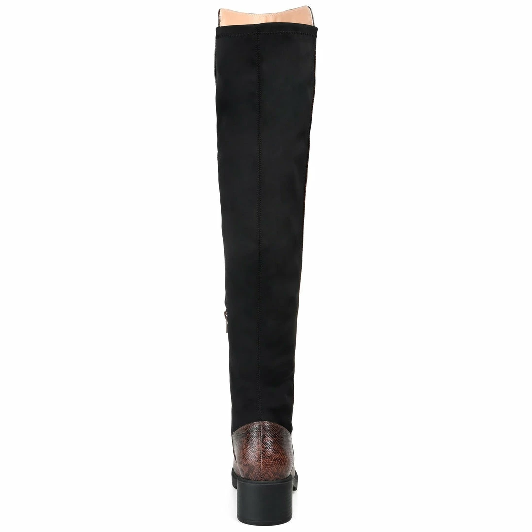In this wide-calf boot with an almond-toe and a stretch gore accent, you can boldly elevate your favorite looks.