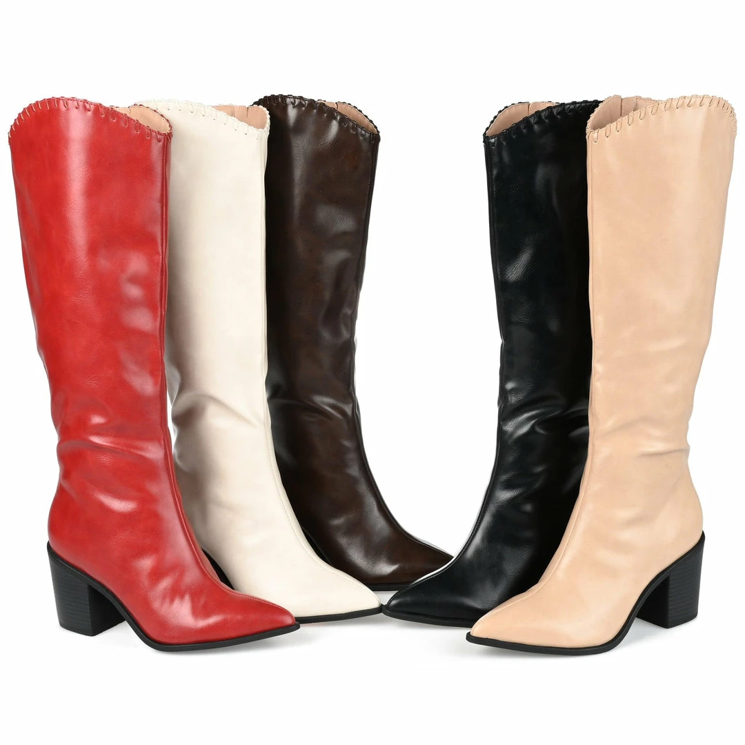 You’re sure to make a bold statement in this western chic knee-high boot detailed with a wide-calf and whipstitching.