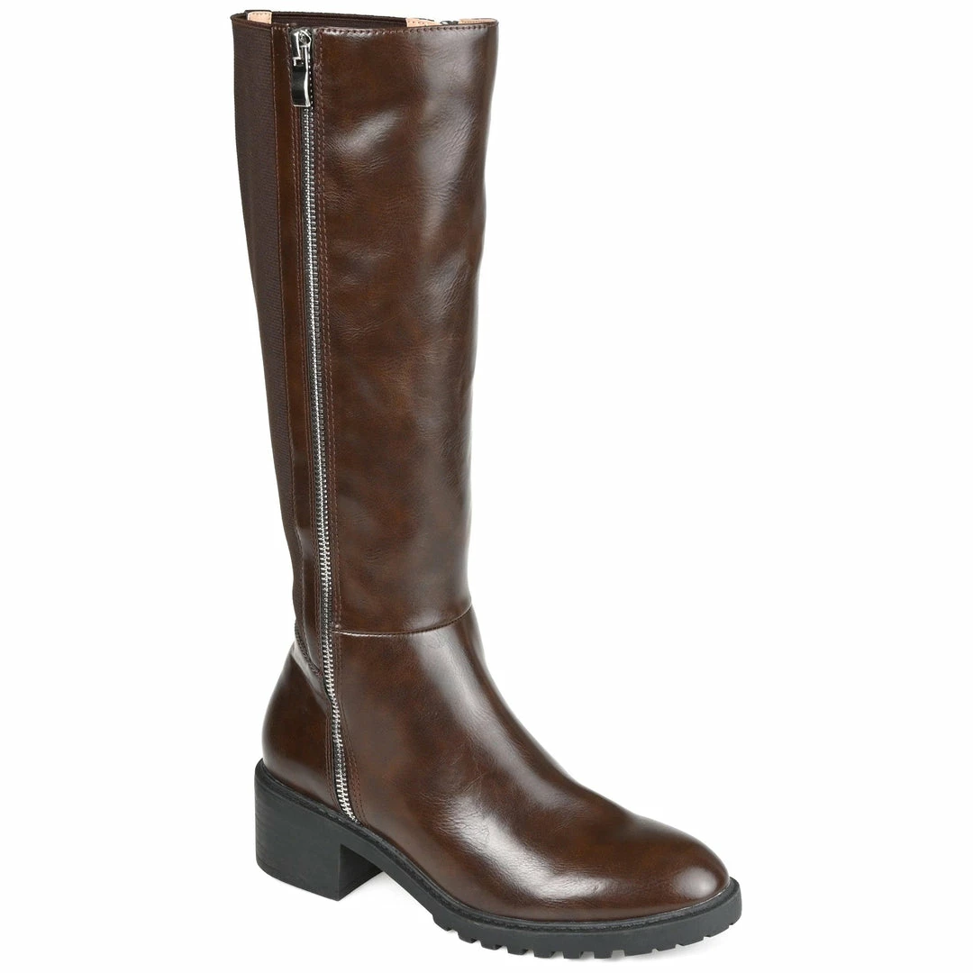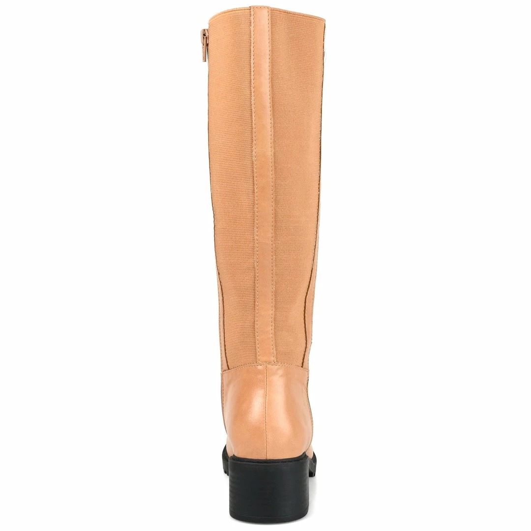 This almond-toe boot is the offers comfort and style with its soft vegan leather uppers and wide-calf.