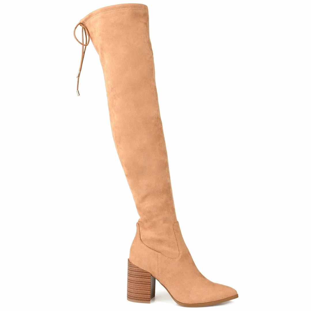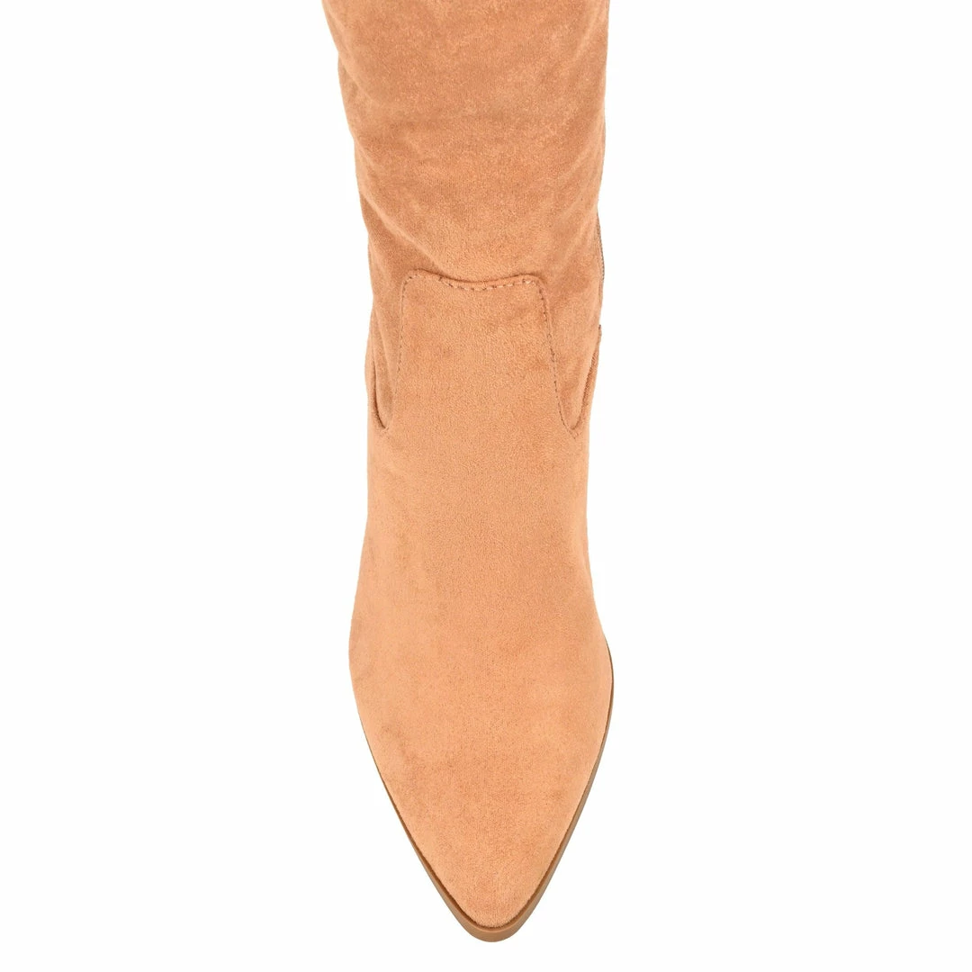 With a pointed-toe and stacked block heel, this over-the-knee wide-calf boot looks like it came right off the runway.