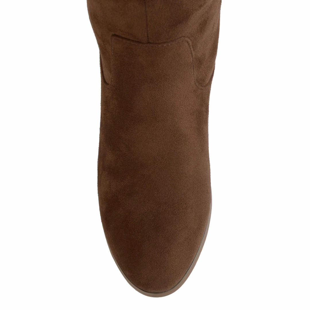 Braving the cold just got a little cozier in these knee-high boots with its faux fur lining, soft vegan leather, and padded footbed.