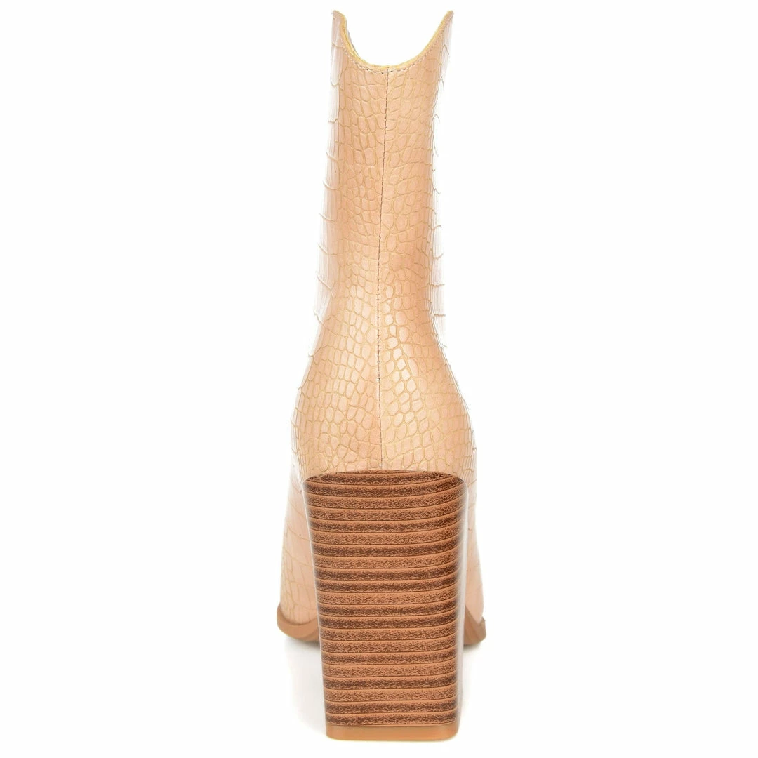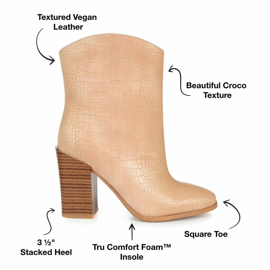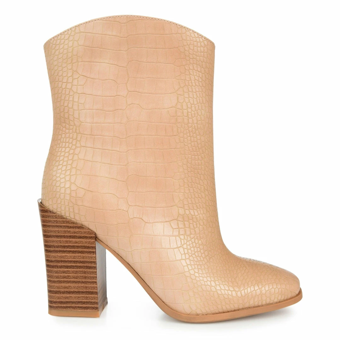 A fresh take on the classic western bootie with croc textured vegan leather and a square-toe.