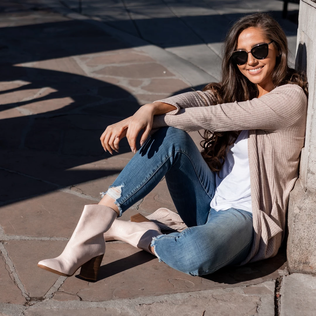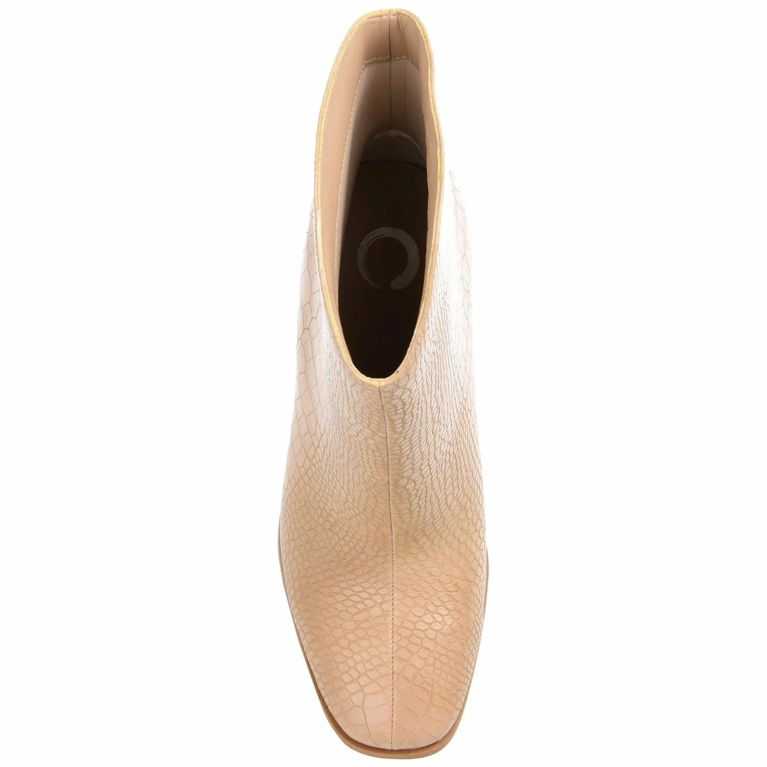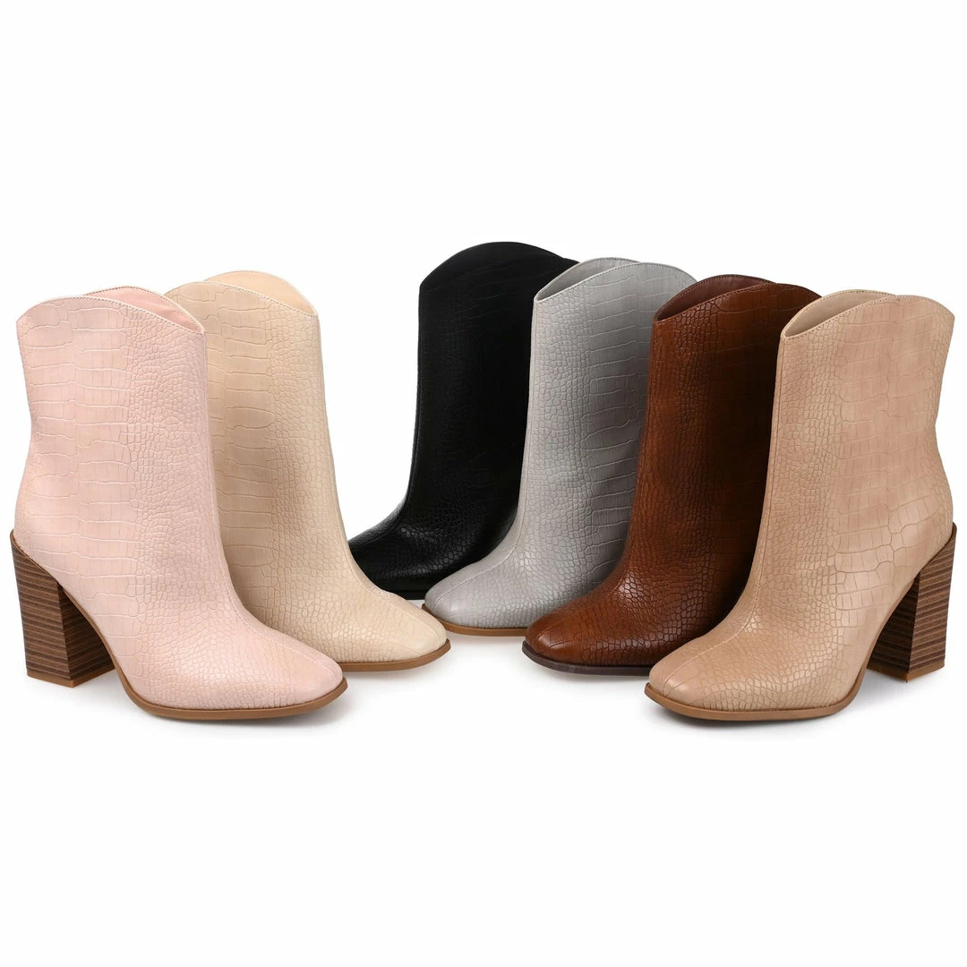A fresh take on the classic western bootie with croc textured vegan leather and a square-toe.