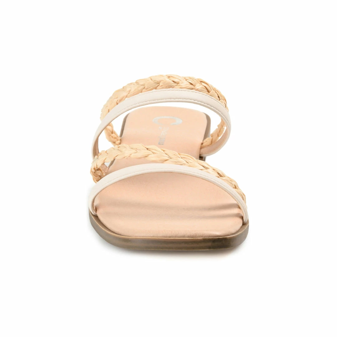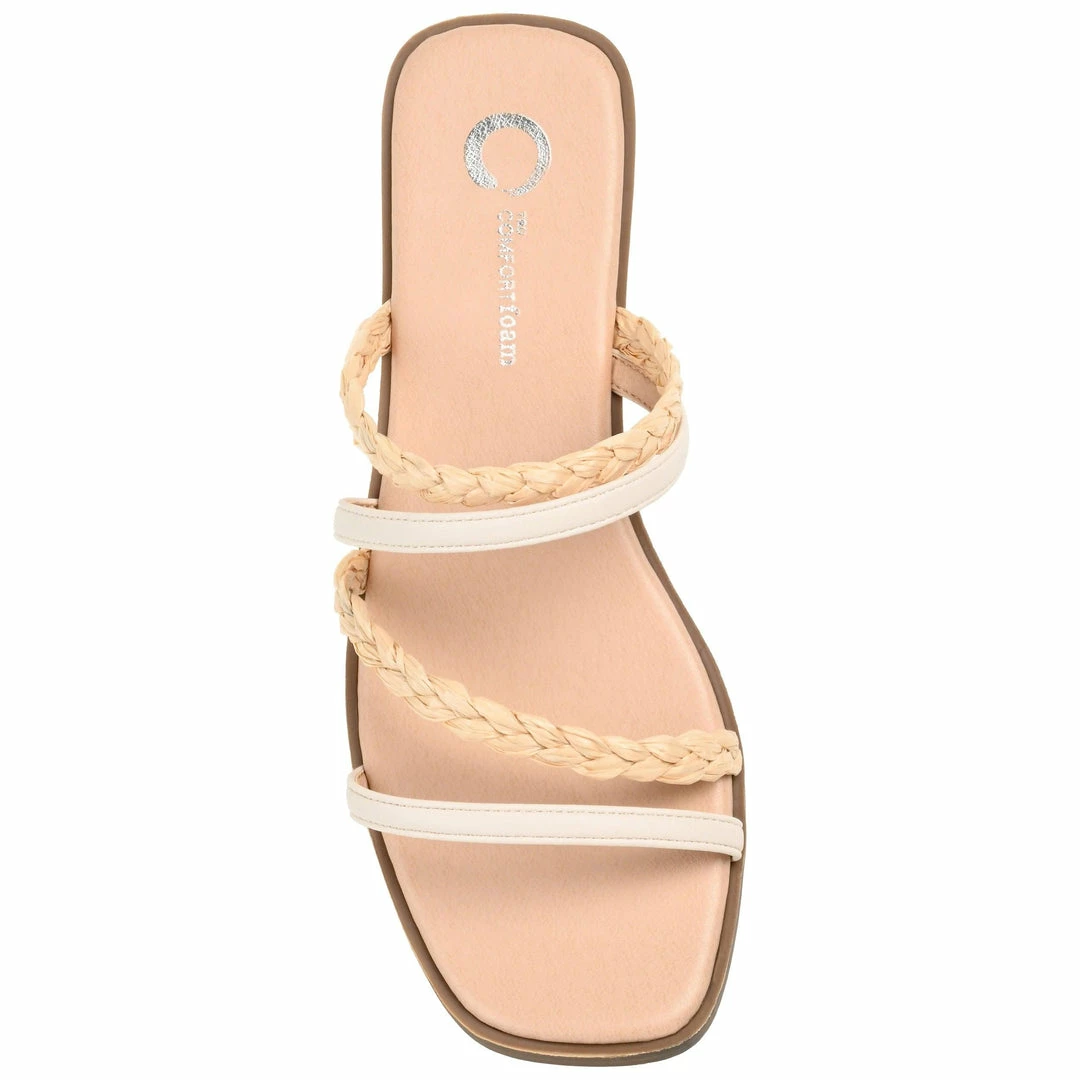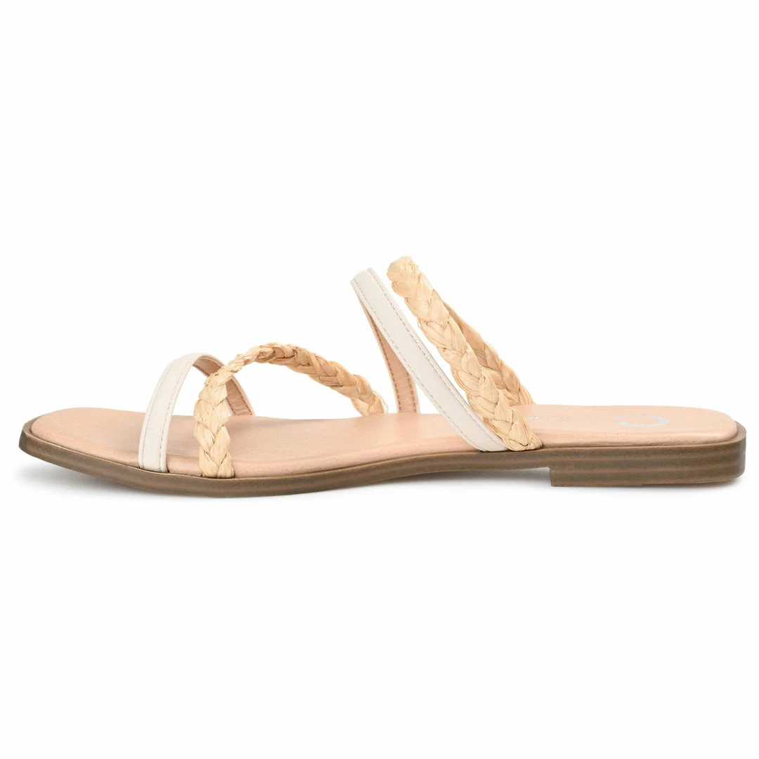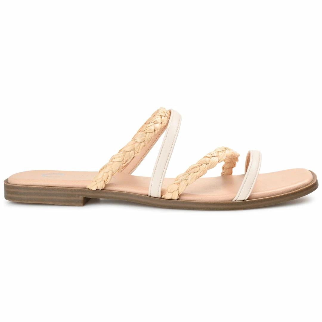 This breezy, beachy look is topped with soft vegan leather straps and braided details.