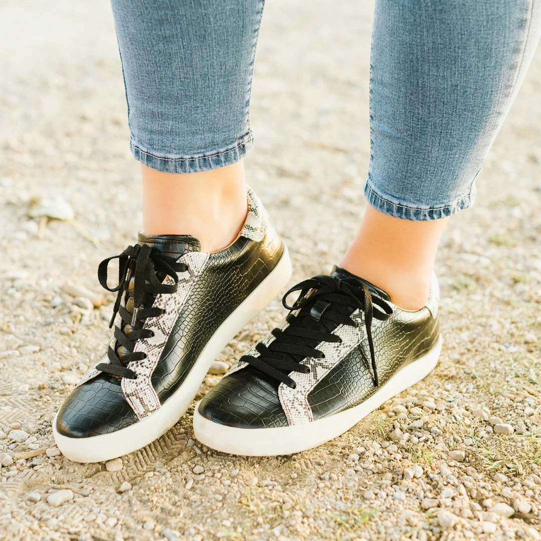 Kick it in this snakeskin textured lace-up sneaker topped with a multi-print design. This sporty look was designed to fit comfortably with soft vegan leather uppers detailed with a padded ankle and finished with an 8 mm Tru Comfort Foam™ footbed.