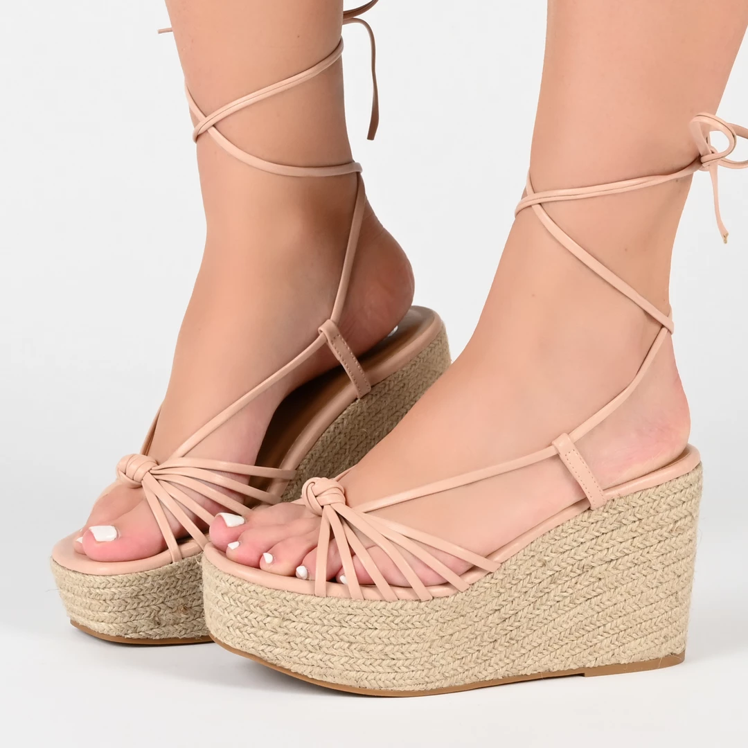 Get ready for the beach in this tie-up sandal with vegan leather straps.