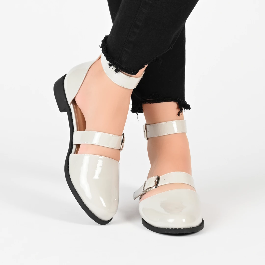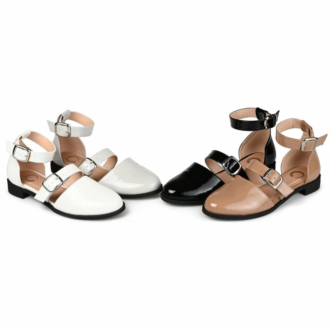 This patent mary jane is topped with double strap details for a fresh spin.