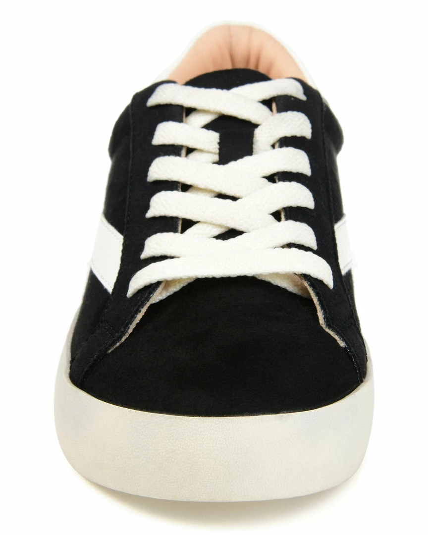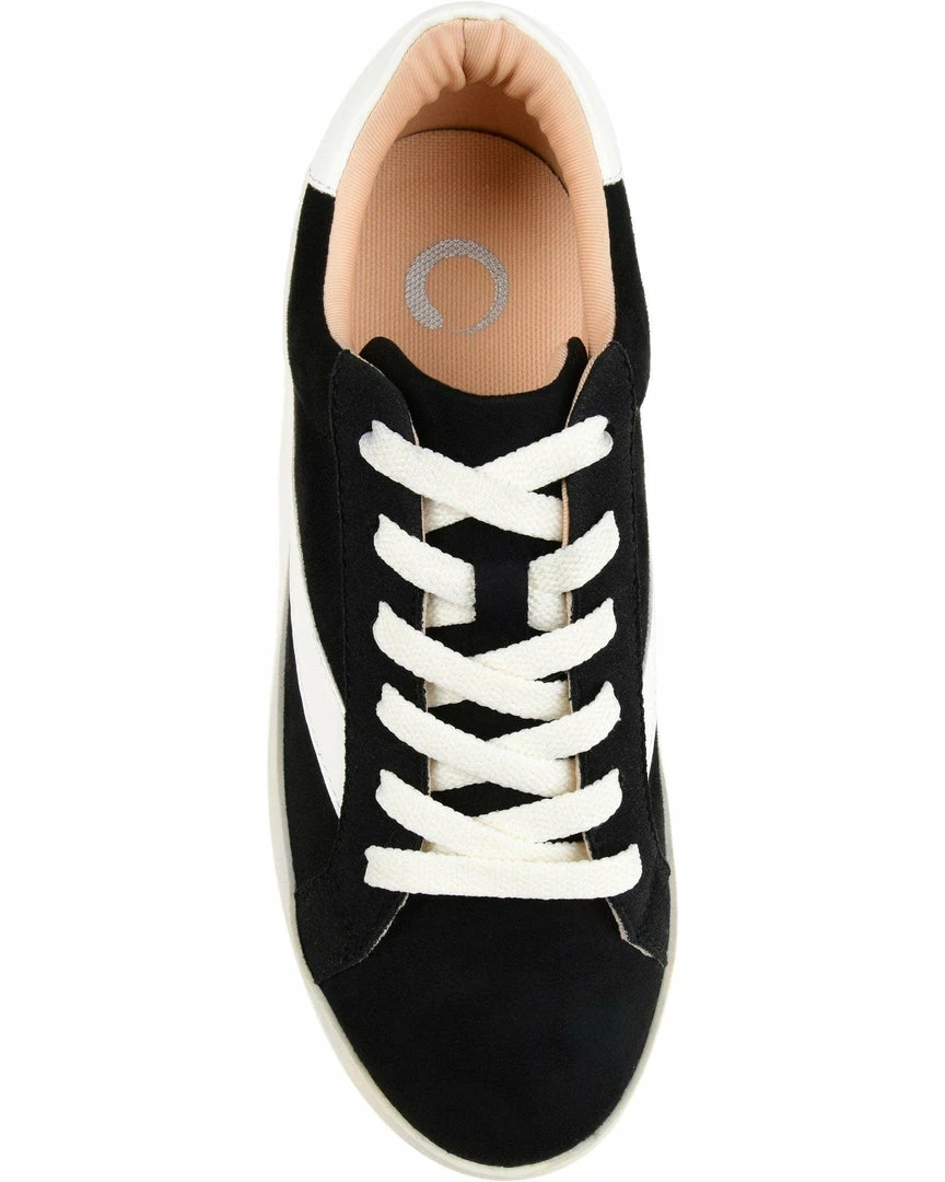 An arched applique detail at the side and two-tone accents add a retro look to these fashion-forward lace-up kicks. A back of heel cushion and a thick rubber sole lined with a 4 mm Tru Comfort Foam™ footbed completes this super-relaxed vegan leather sneaker.