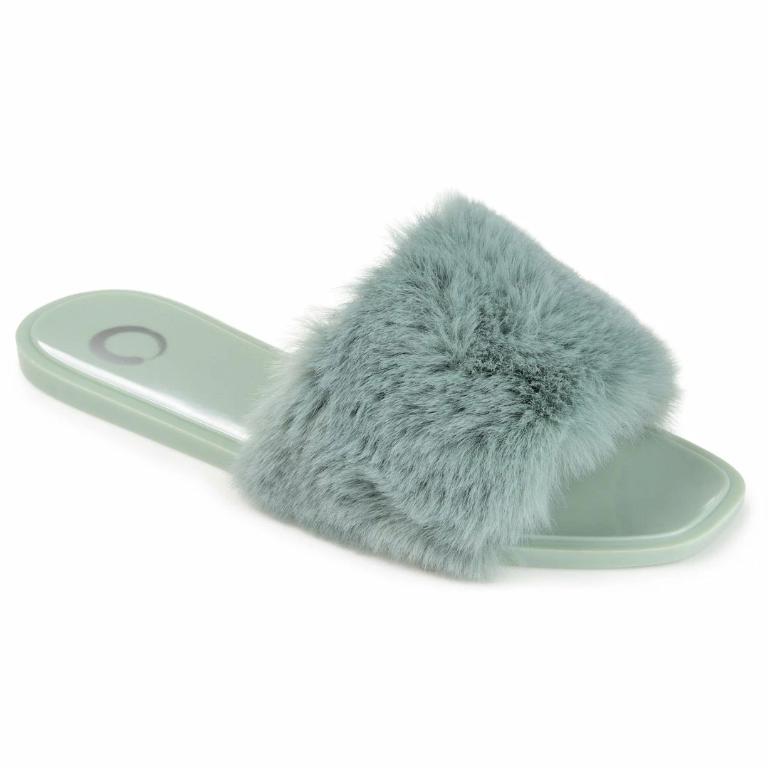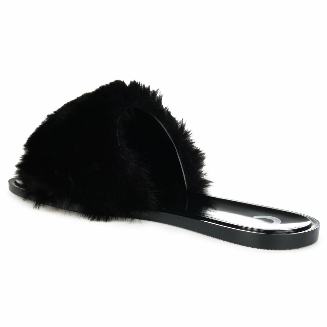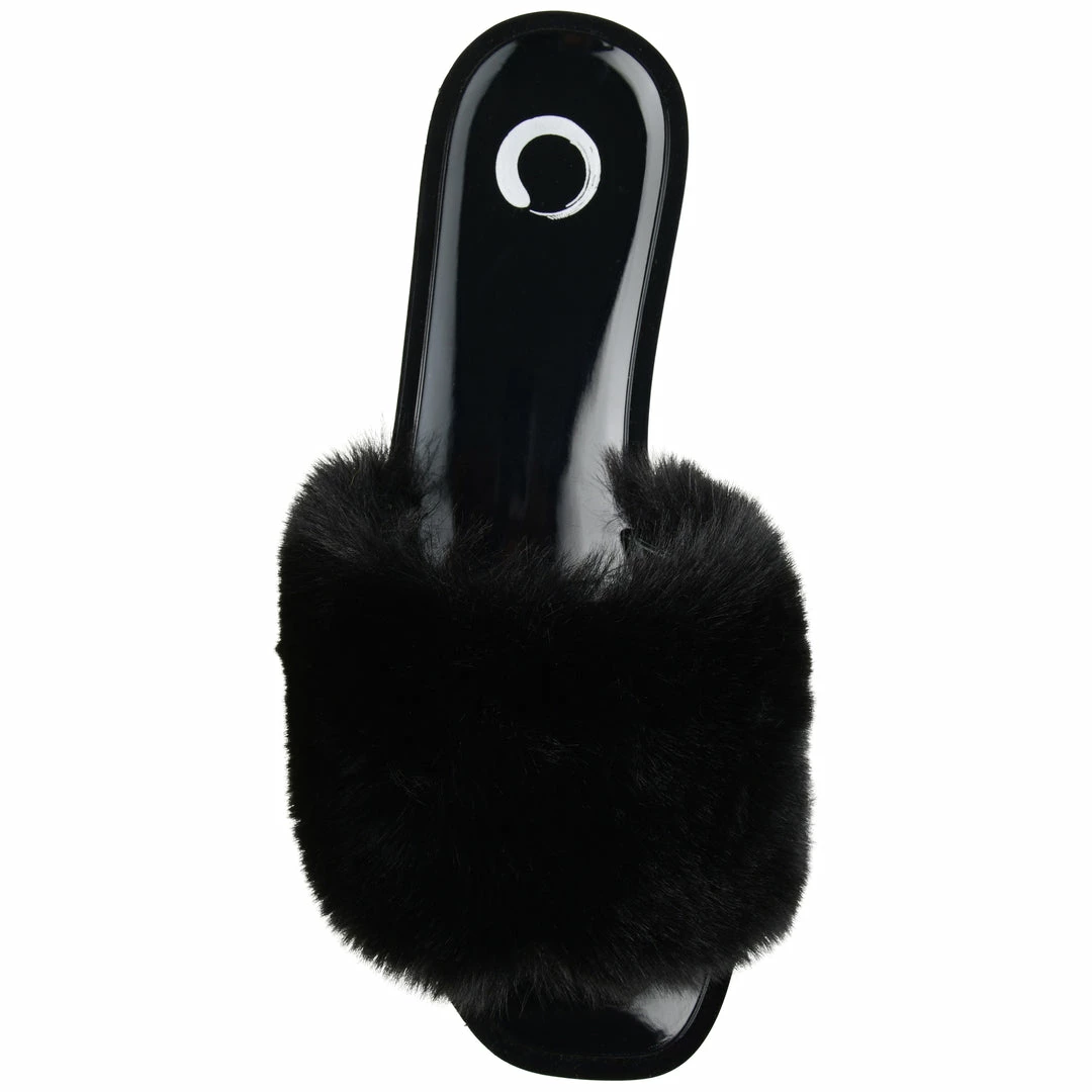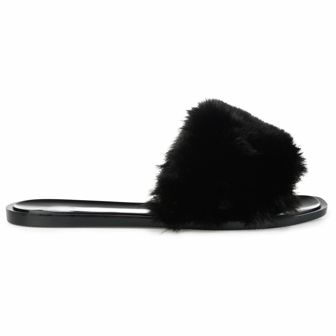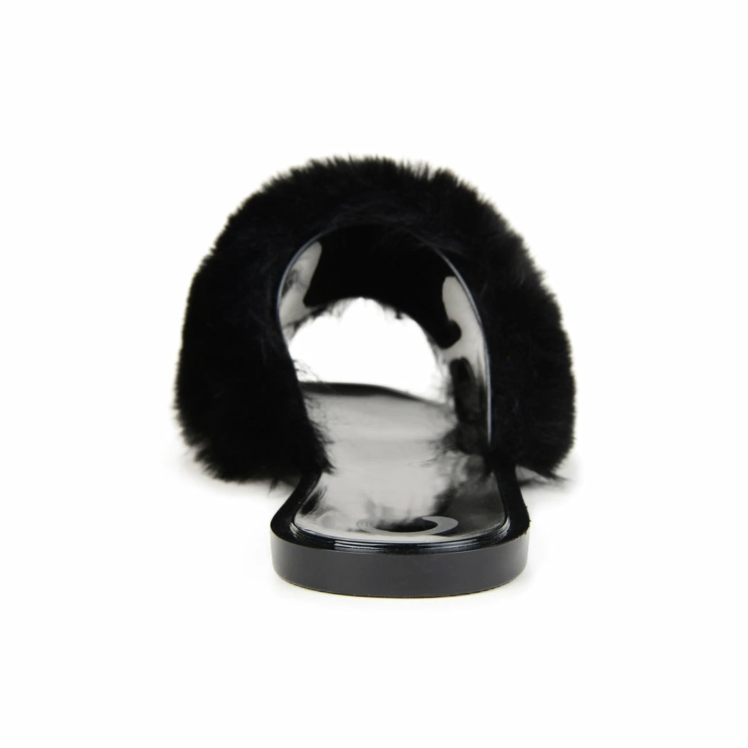 Dish retro realness with these plush faux fur slides detailed with a jelly soled flat that will fulfill all your 90s dreams.