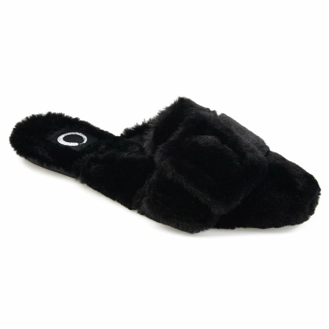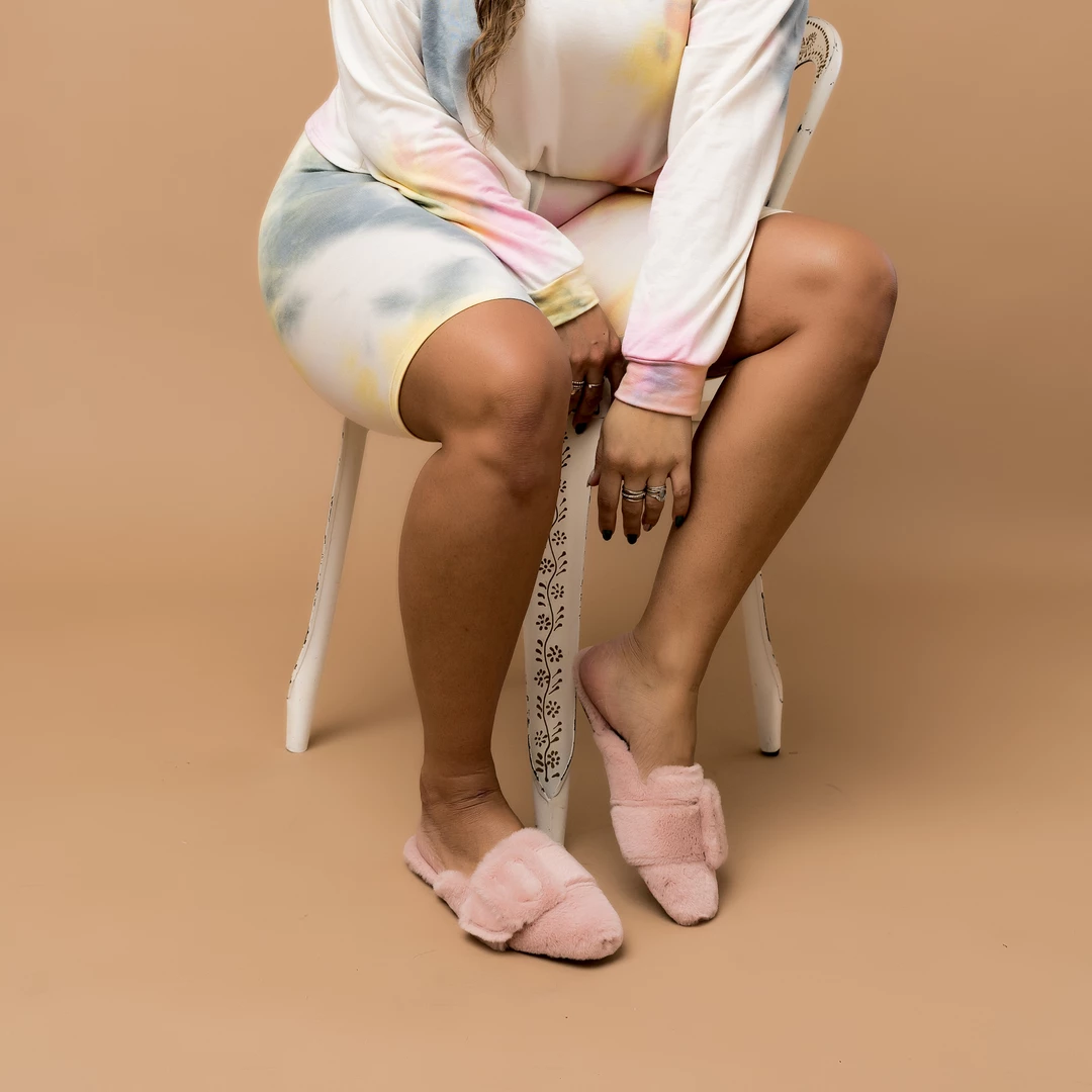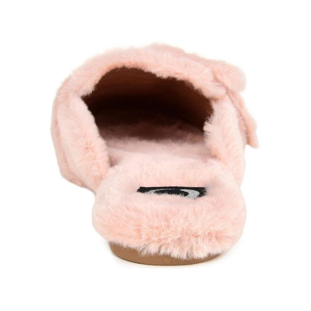 Our backless plush fur slippers are sure to become your favorite girl’s night in look. With a cushioned footbed and buckle accent, you’ll feel like a princess even after the clock strikes twelve.