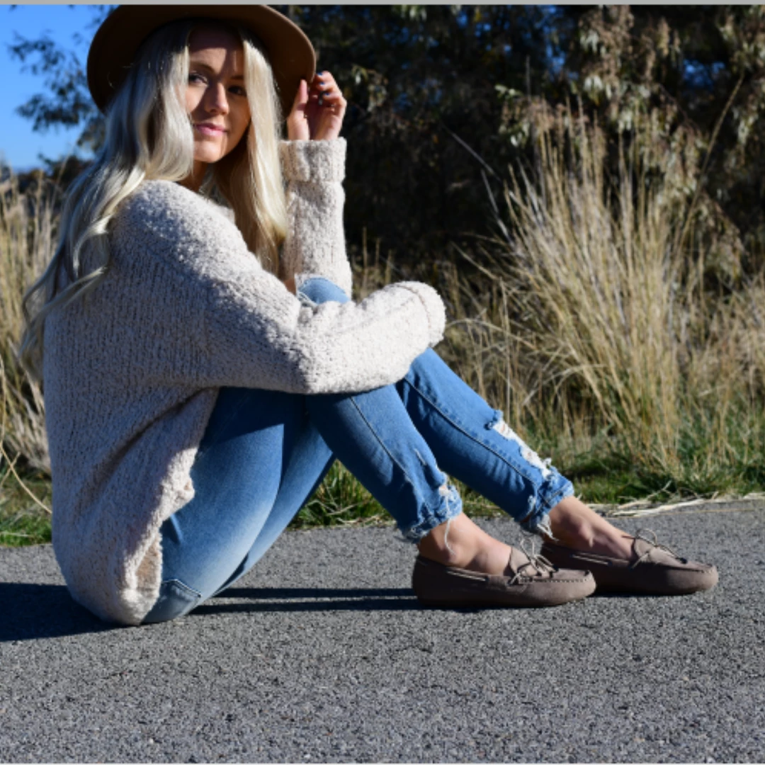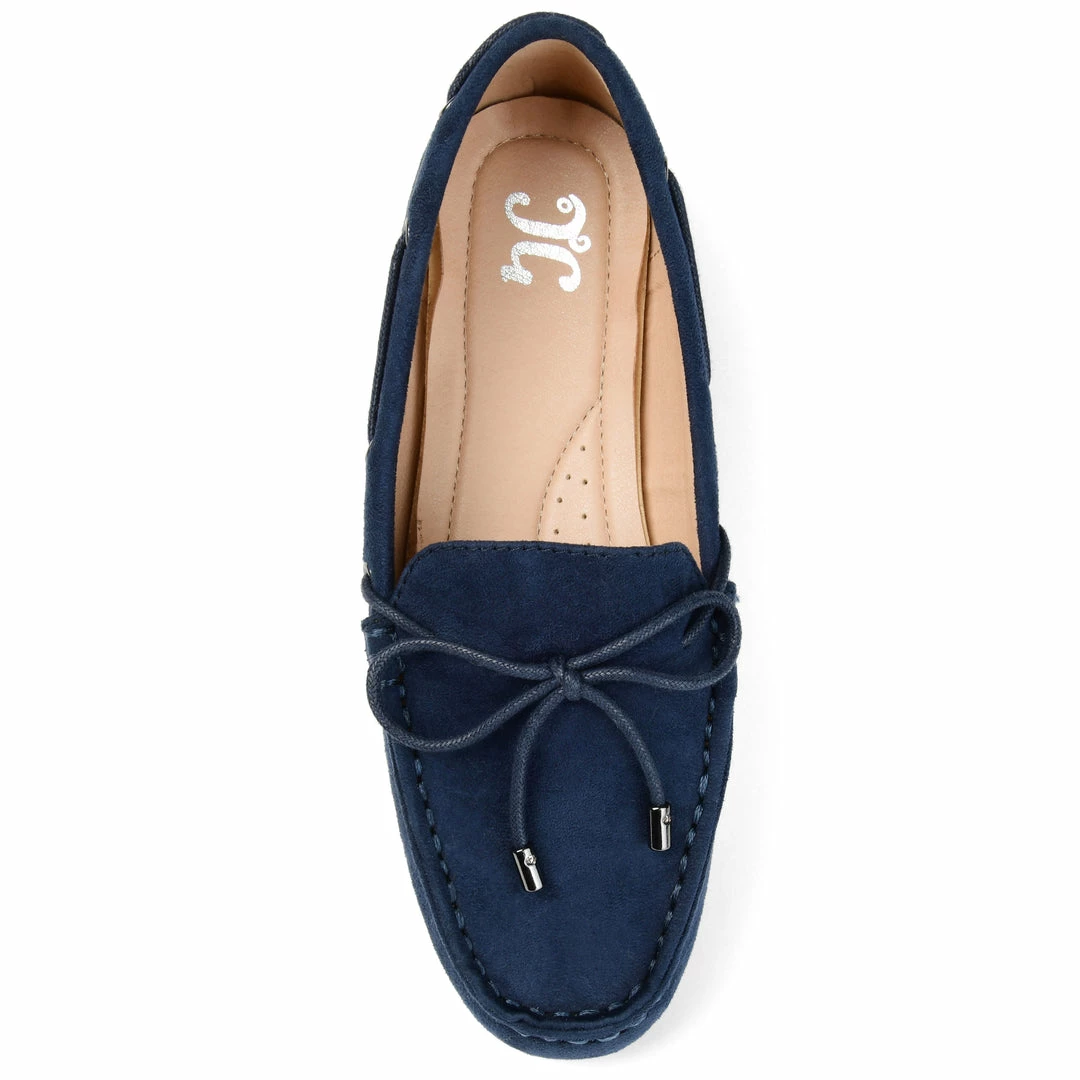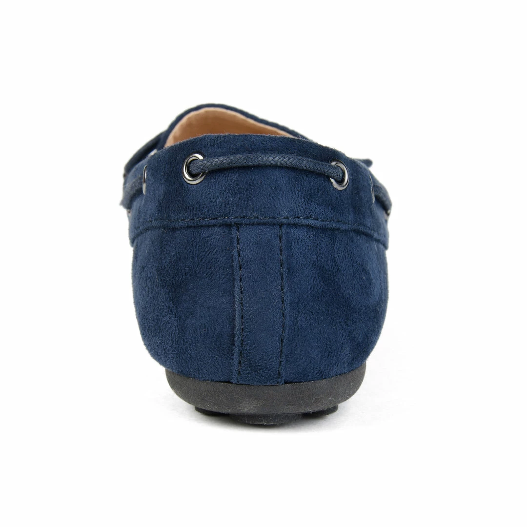 Comfort insoles and velvety soft vegan suede give this slip-on loafer a cloud-like feeling. This effortless moccasin style features exposed stitch details, a tied bow at the vamp, and a tractional outsole for a laid-back, practical look.
