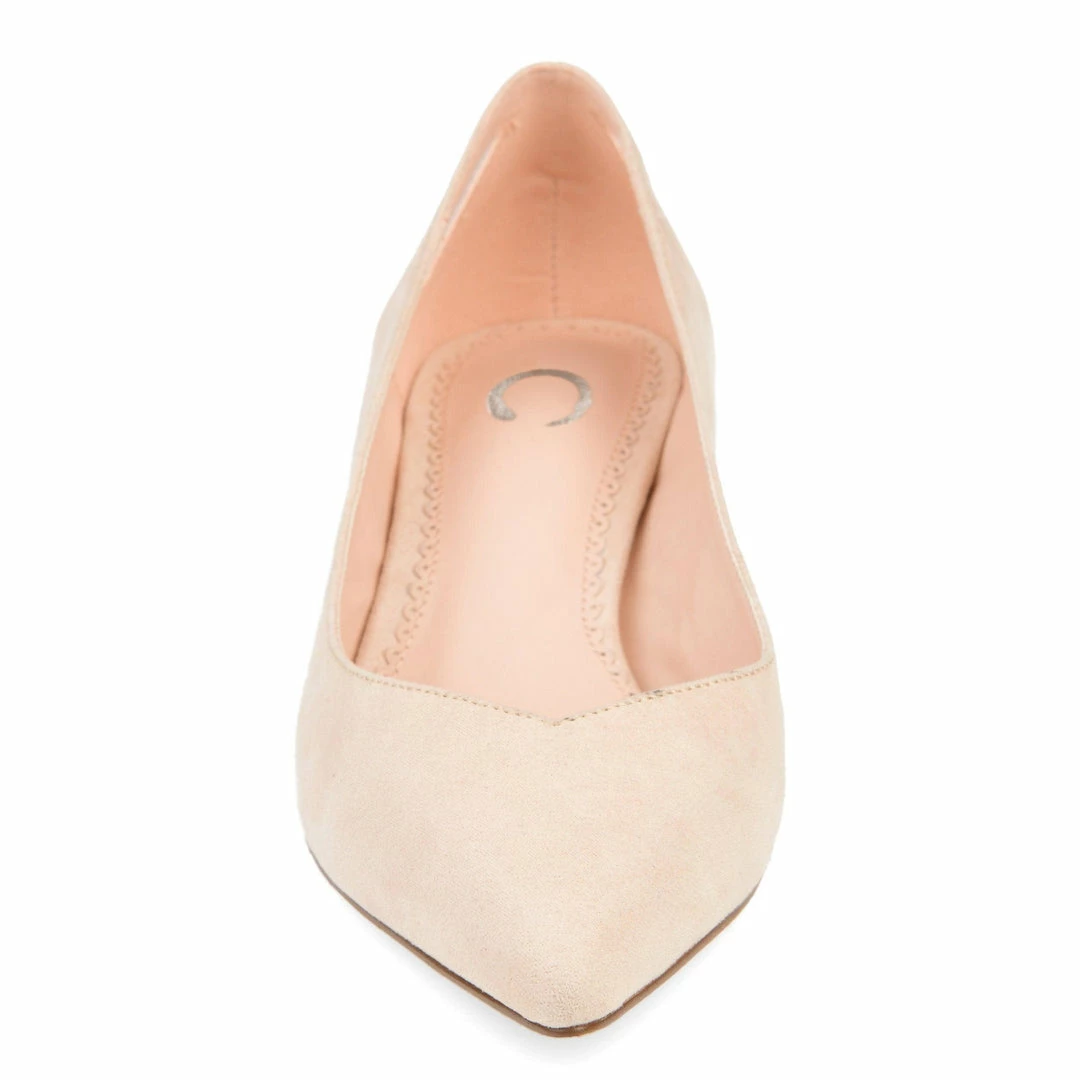 A dainty pointed-toe kitten heel rendered with velvety-soft vegan suede detailed with a sweetheart shaped topline and cutouts at the heel.