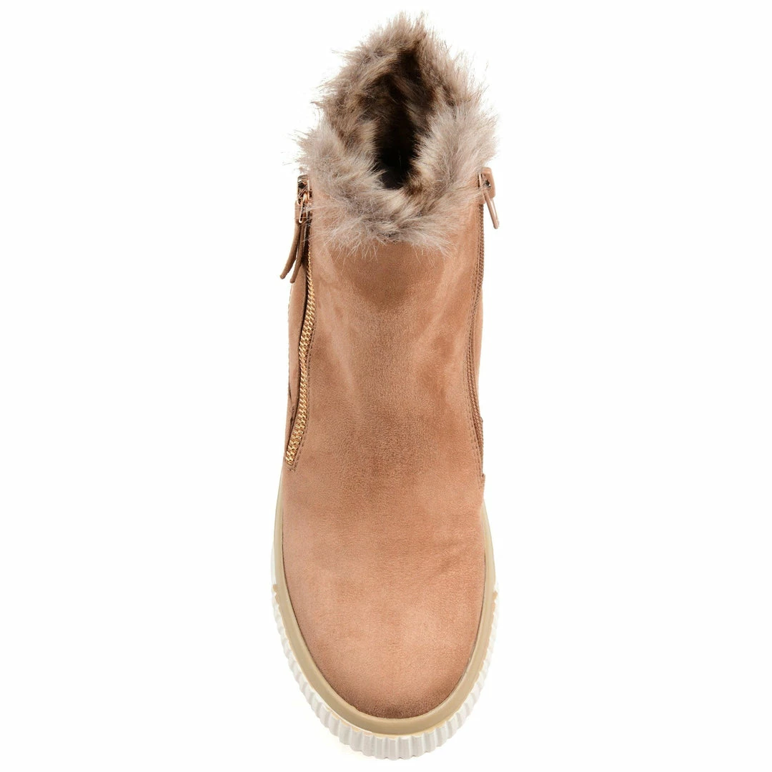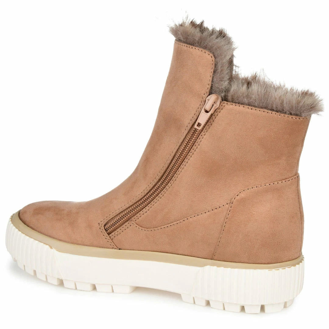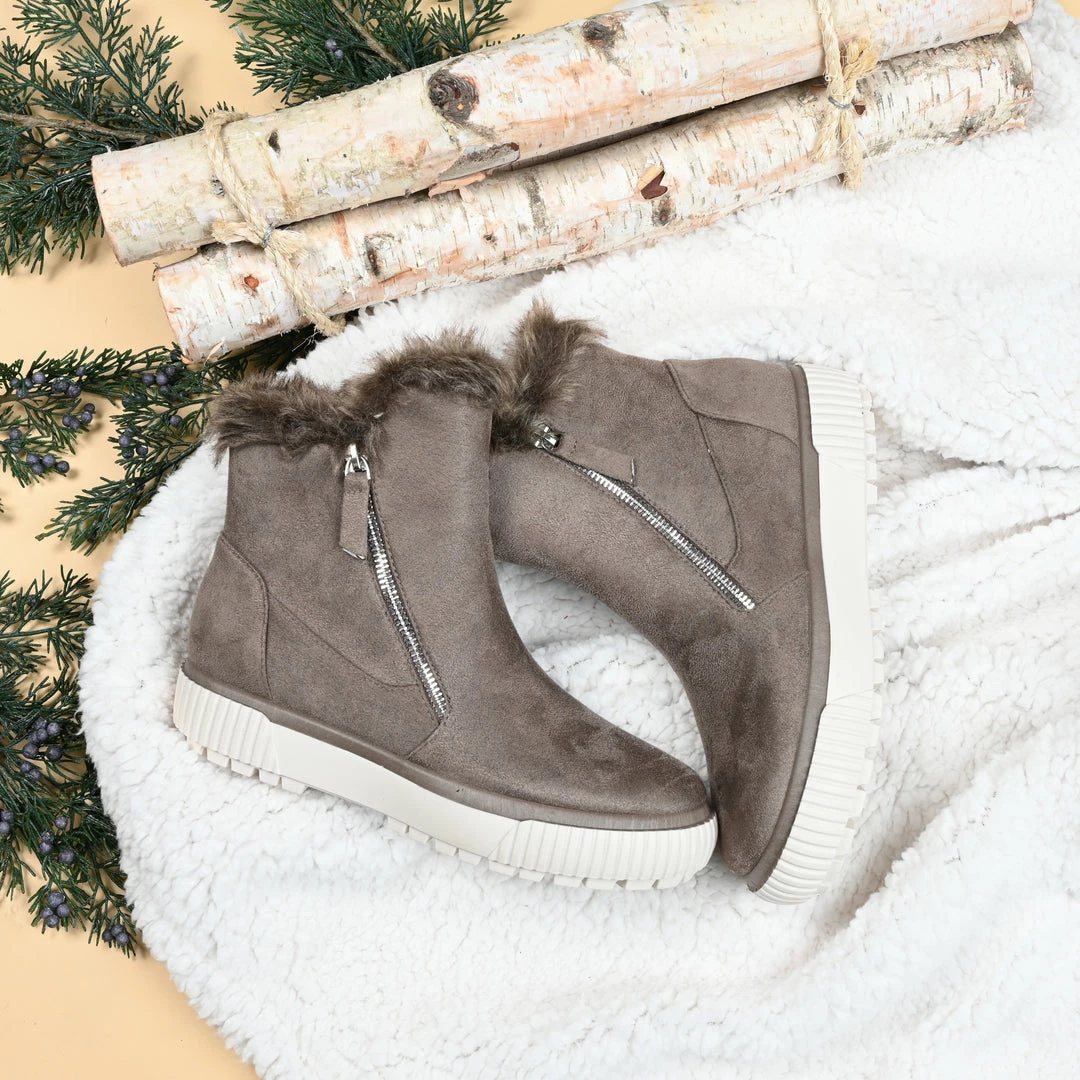 A sporty practical boot with a round-toe and durable vegan leather uppers detailed with zippers at the sides for easy entry. Fluffy faux-fur trim provides extra warmth and a treaded sole lined with a 4 mm Tru Comfort Foam™ footbed finishes this casual-cool look.
