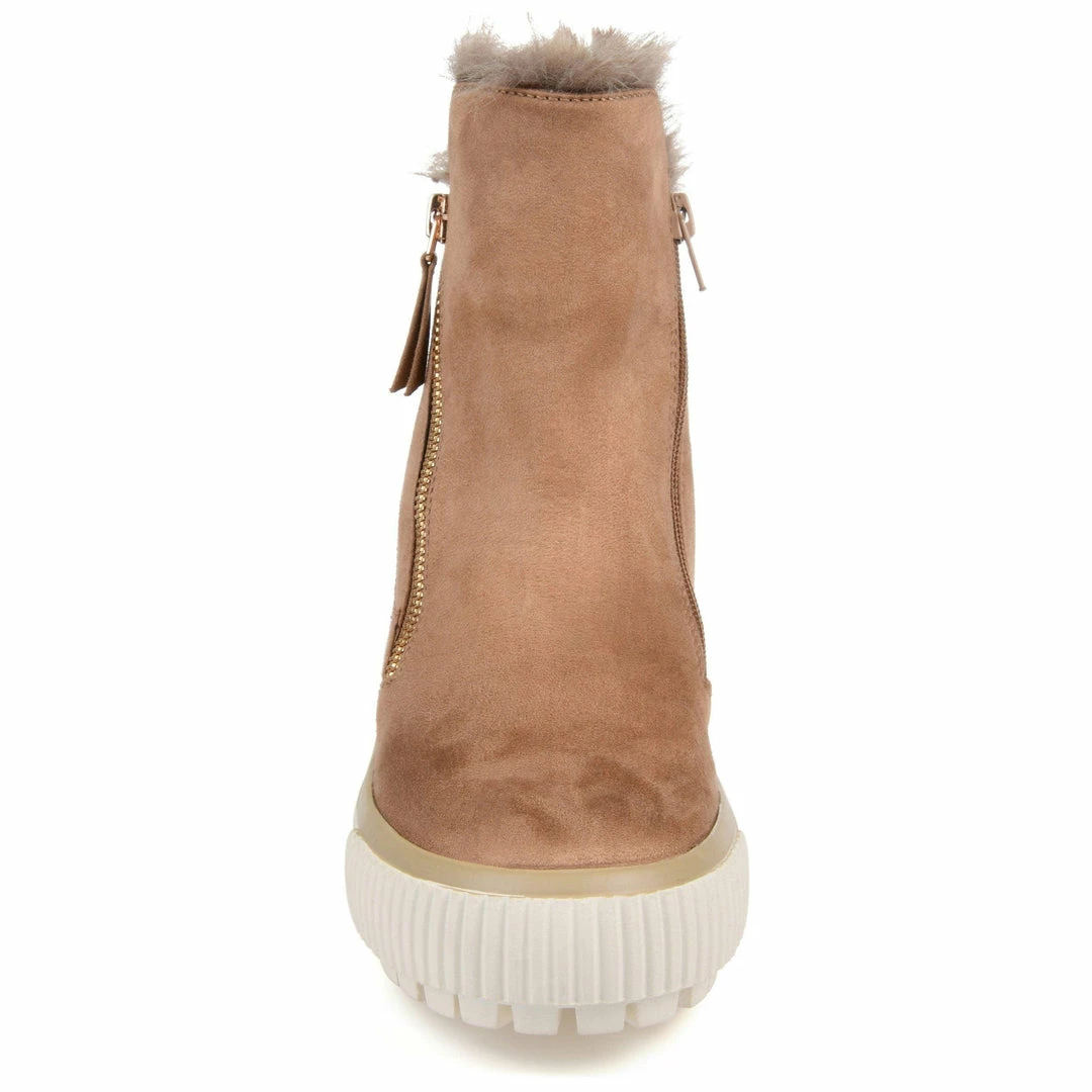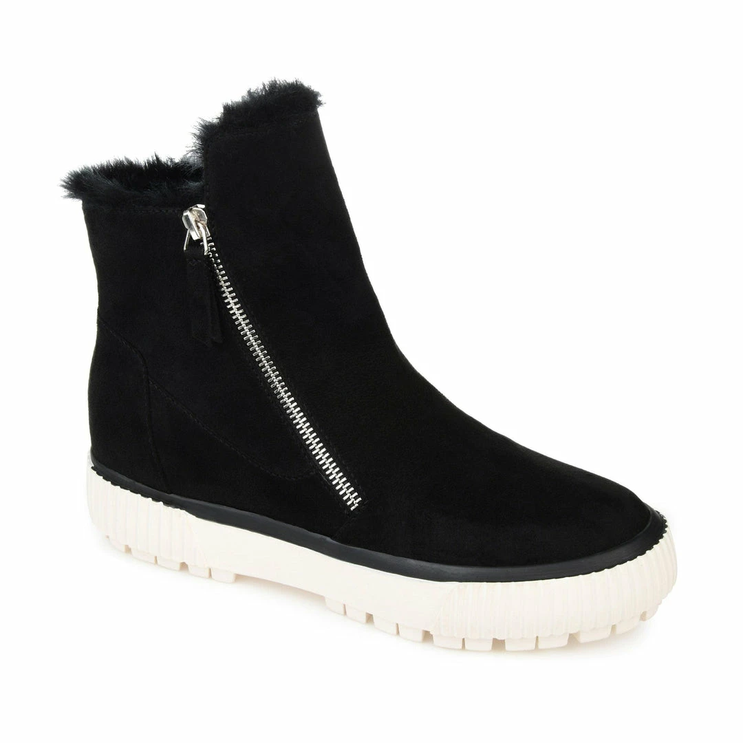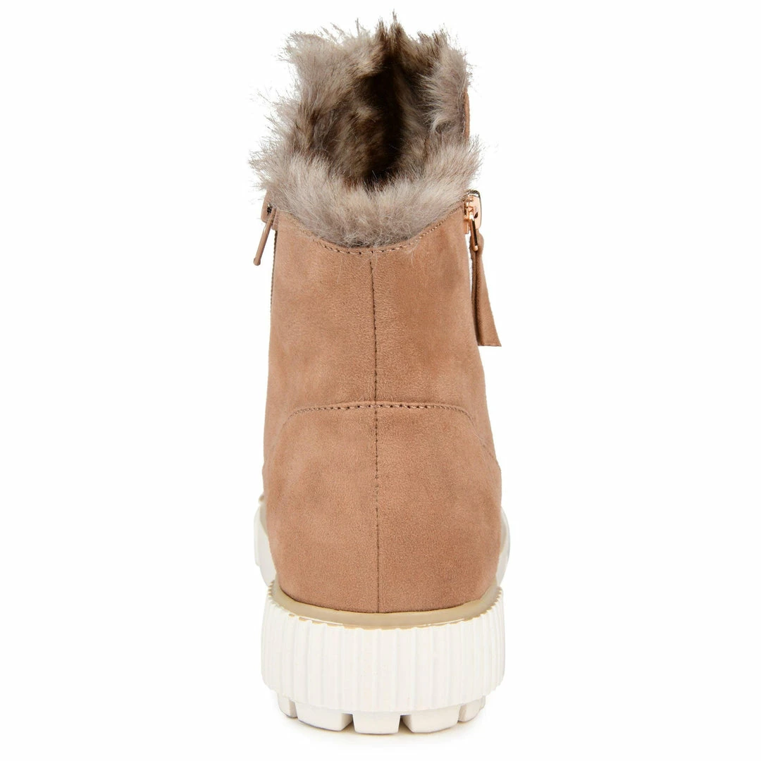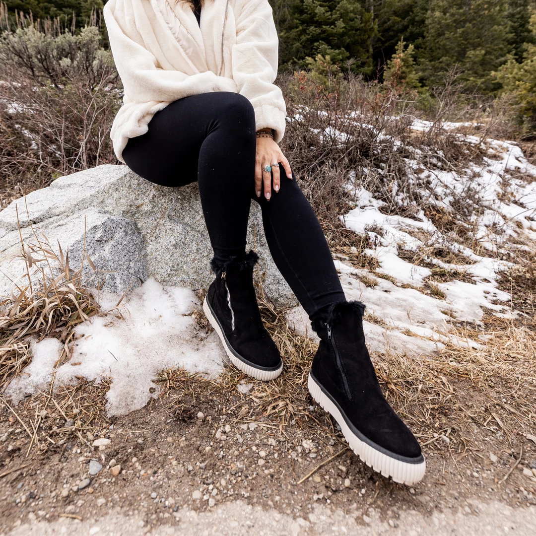 A sporty practical boot with a round-toe and durable vegan leather uppers detailed with zippers at the sides for easy entry. Fluffy faux-fur trim provides extra warmth and a treaded sole lined with a 4 mm Tru Comfort Foam™ footbed finishes this casual-cool look.