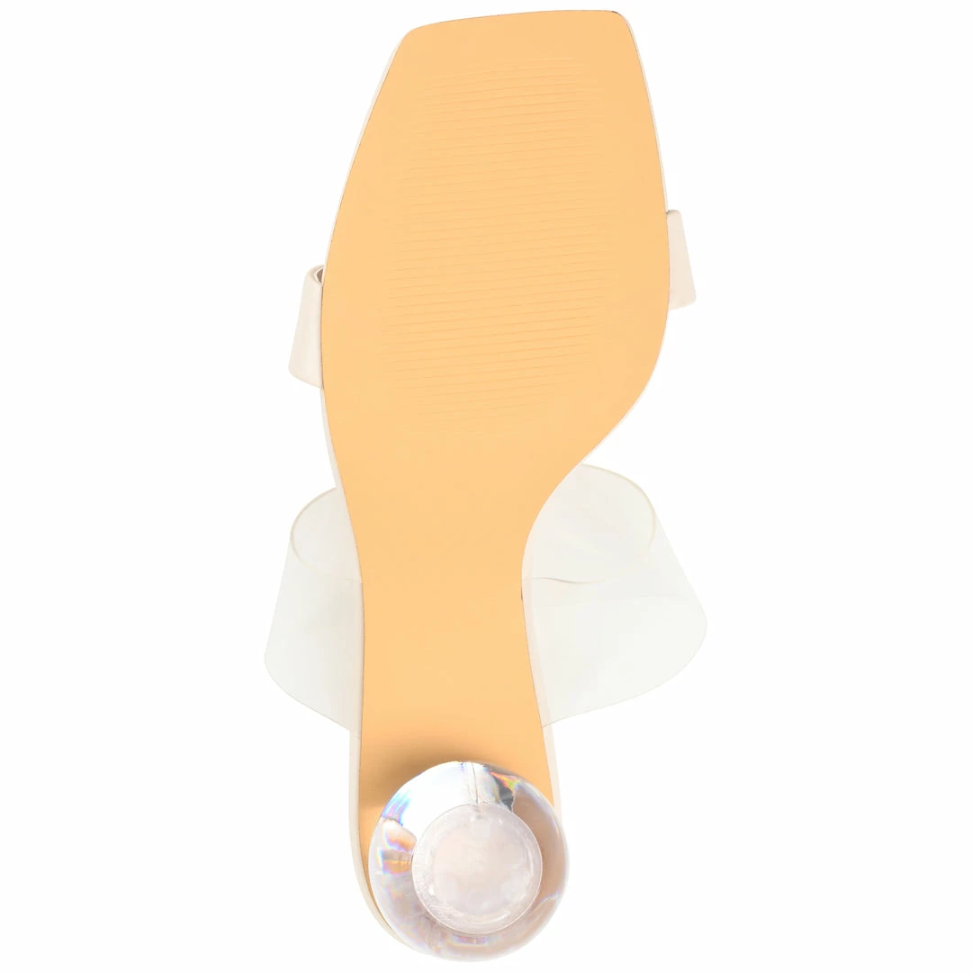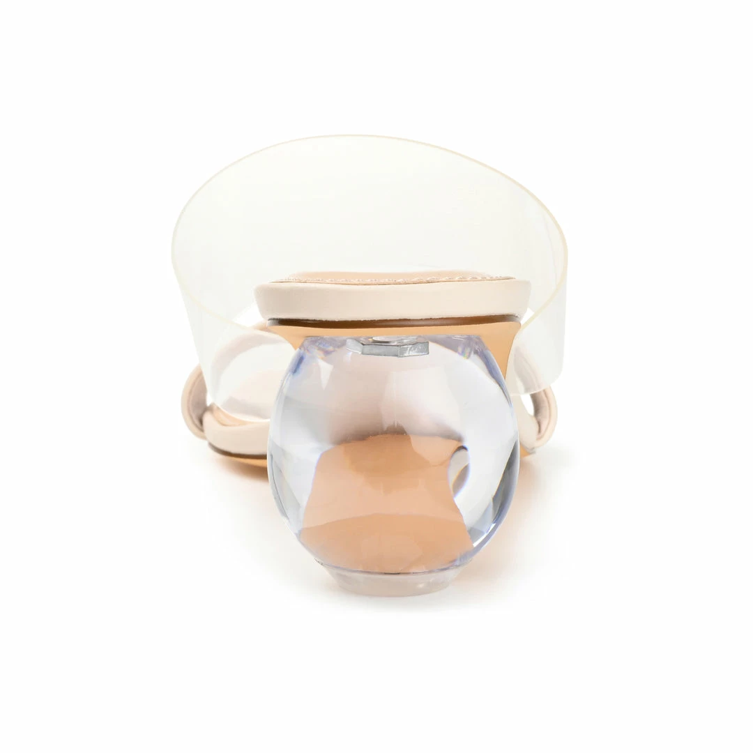 With a spherical heel and lucite detail at the vamp, this strappy heel is a clear winner for the weekend.