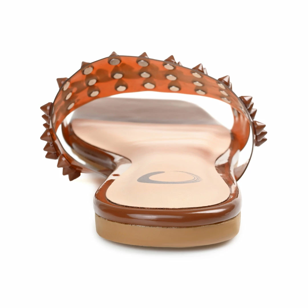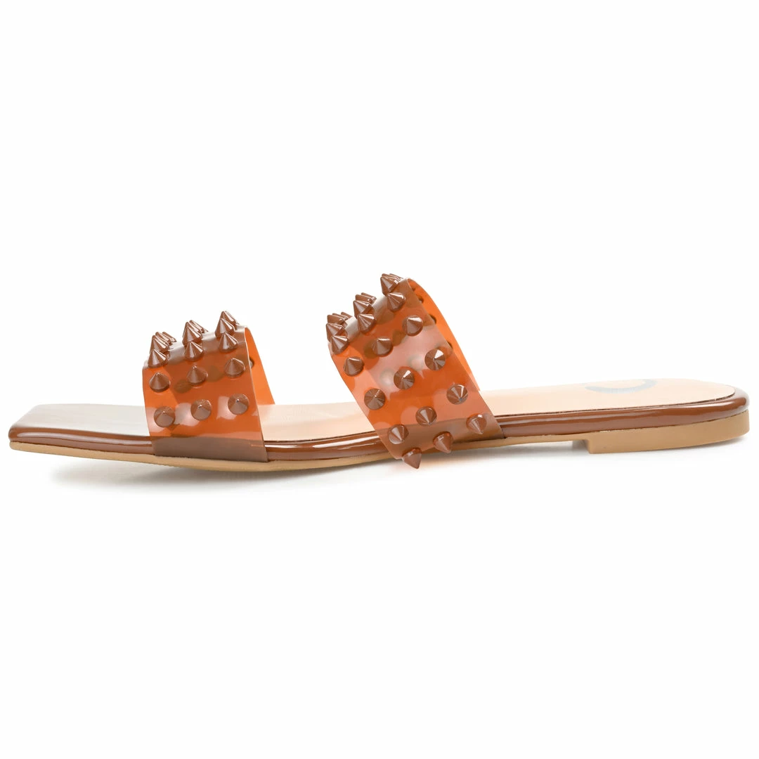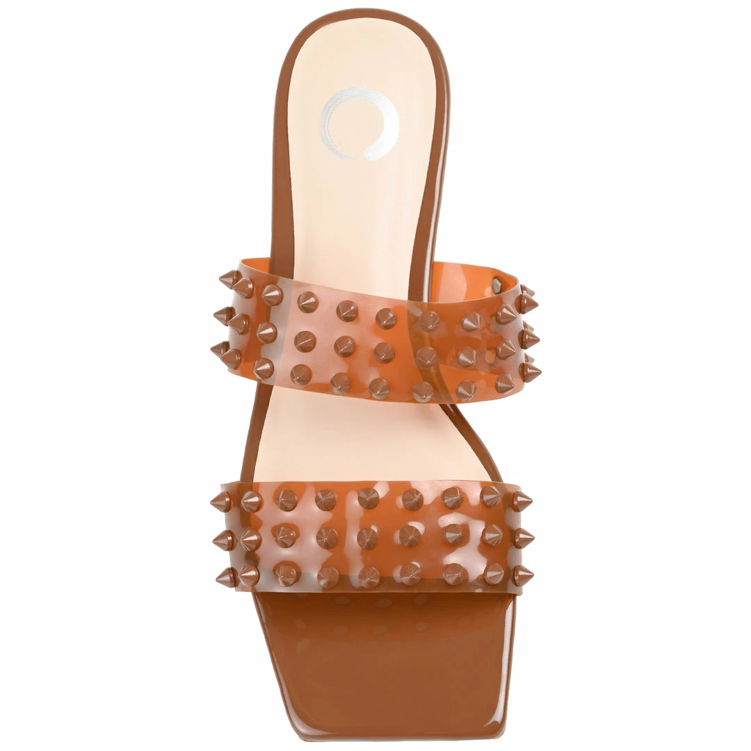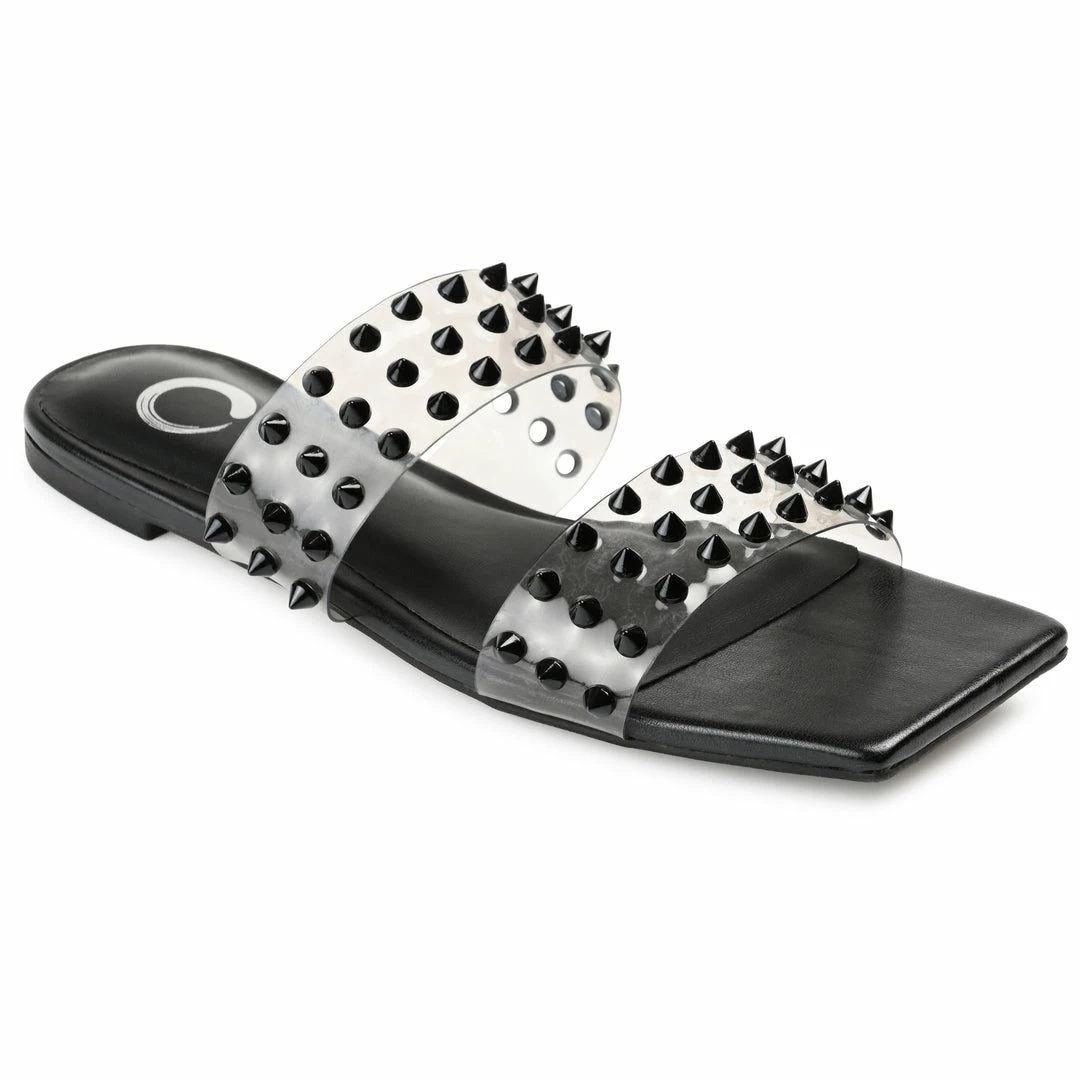 Prepare to impress in this upscale slide with lucite straps covered in stud details.