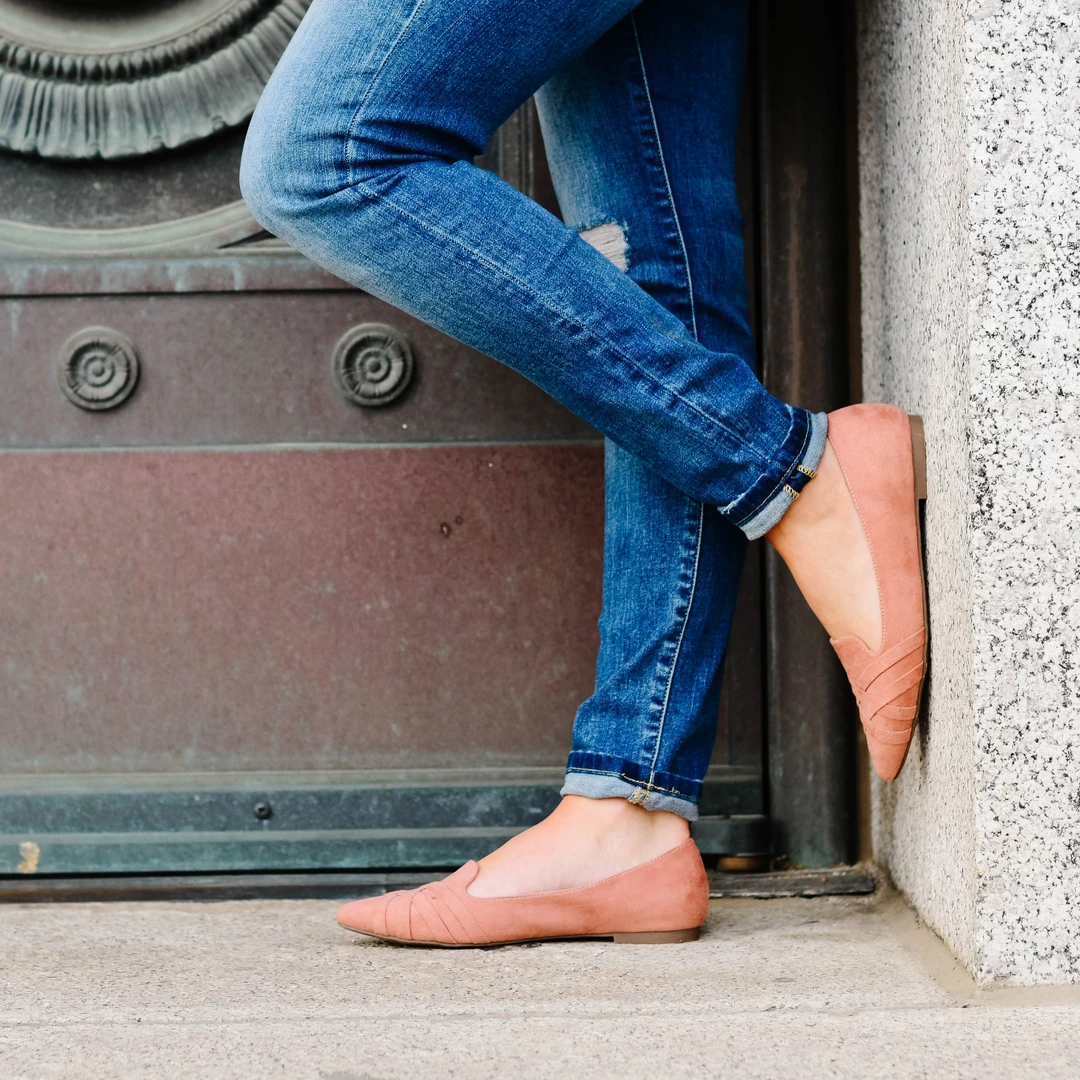 A preppy crisscross detail at the vamp, buttery soft vegan suede, and a padded footbed shape this pointed-toe loafer for a sophisticated yet comfortable look.