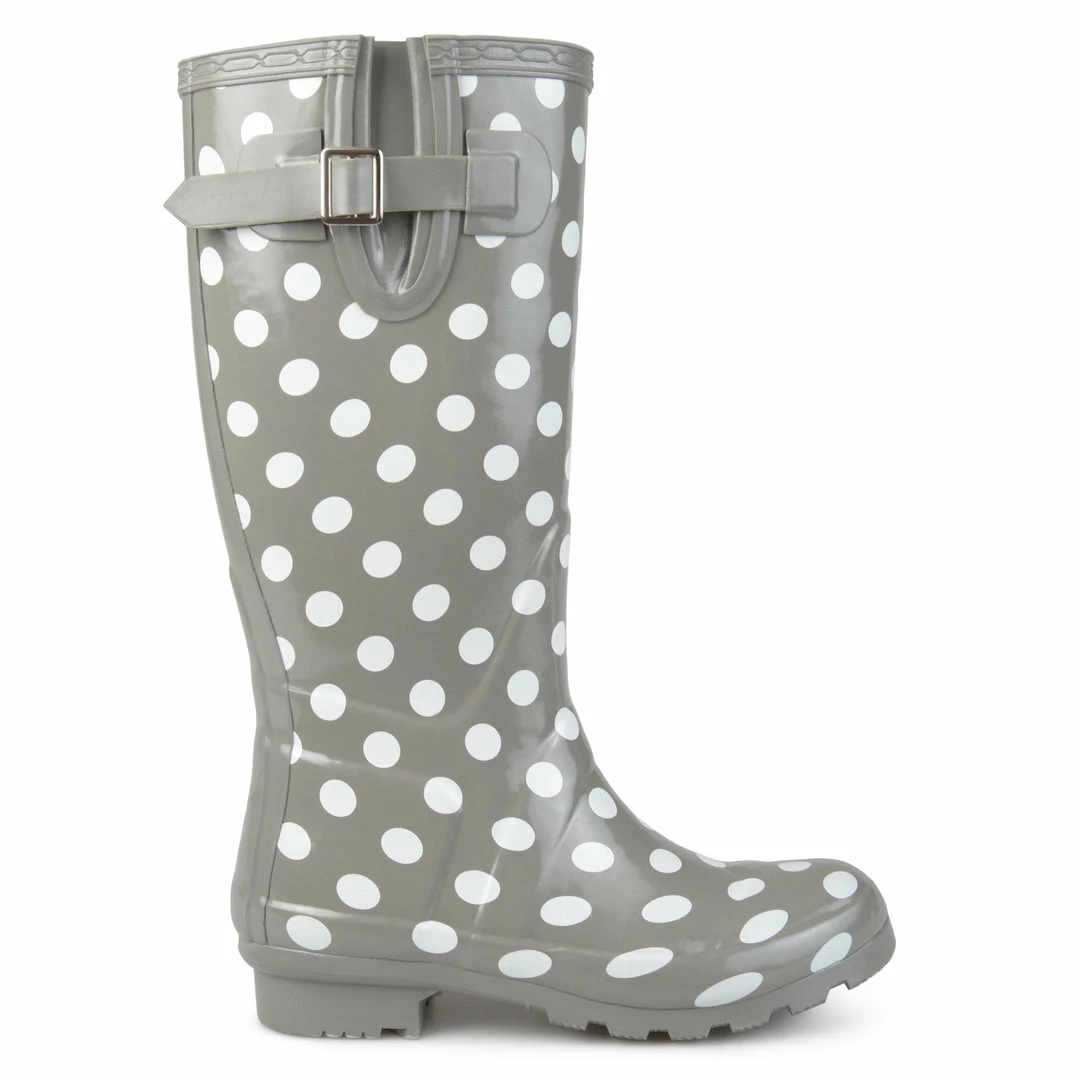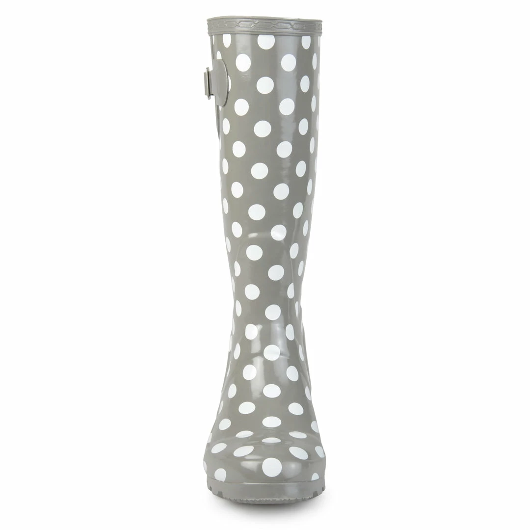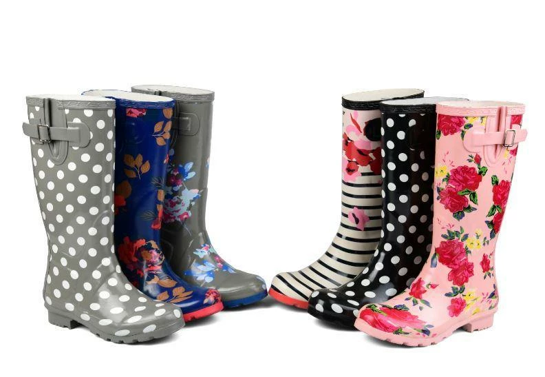 Brighten up rainy days with this whimsically printed rubber rainboot.