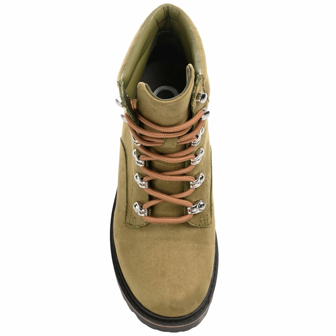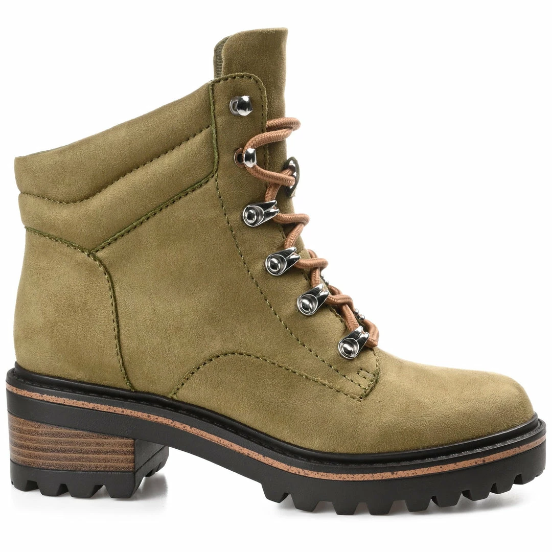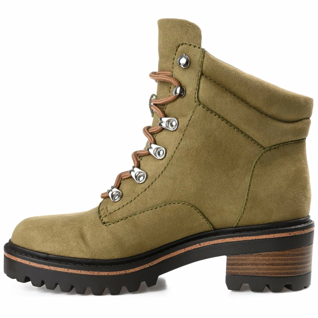 Hiker booties that take you places with heavy-duty metal eyelets and a chunky lug-sole.