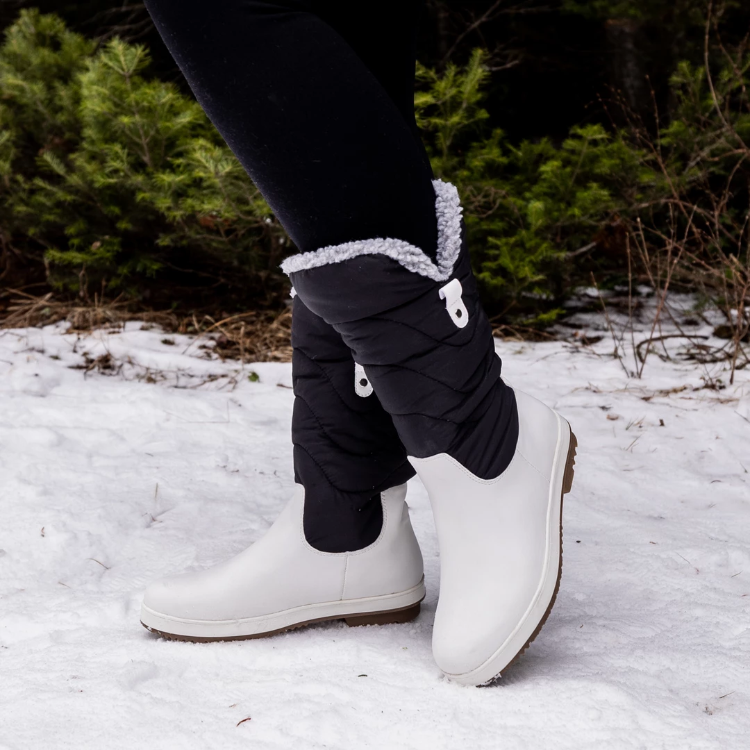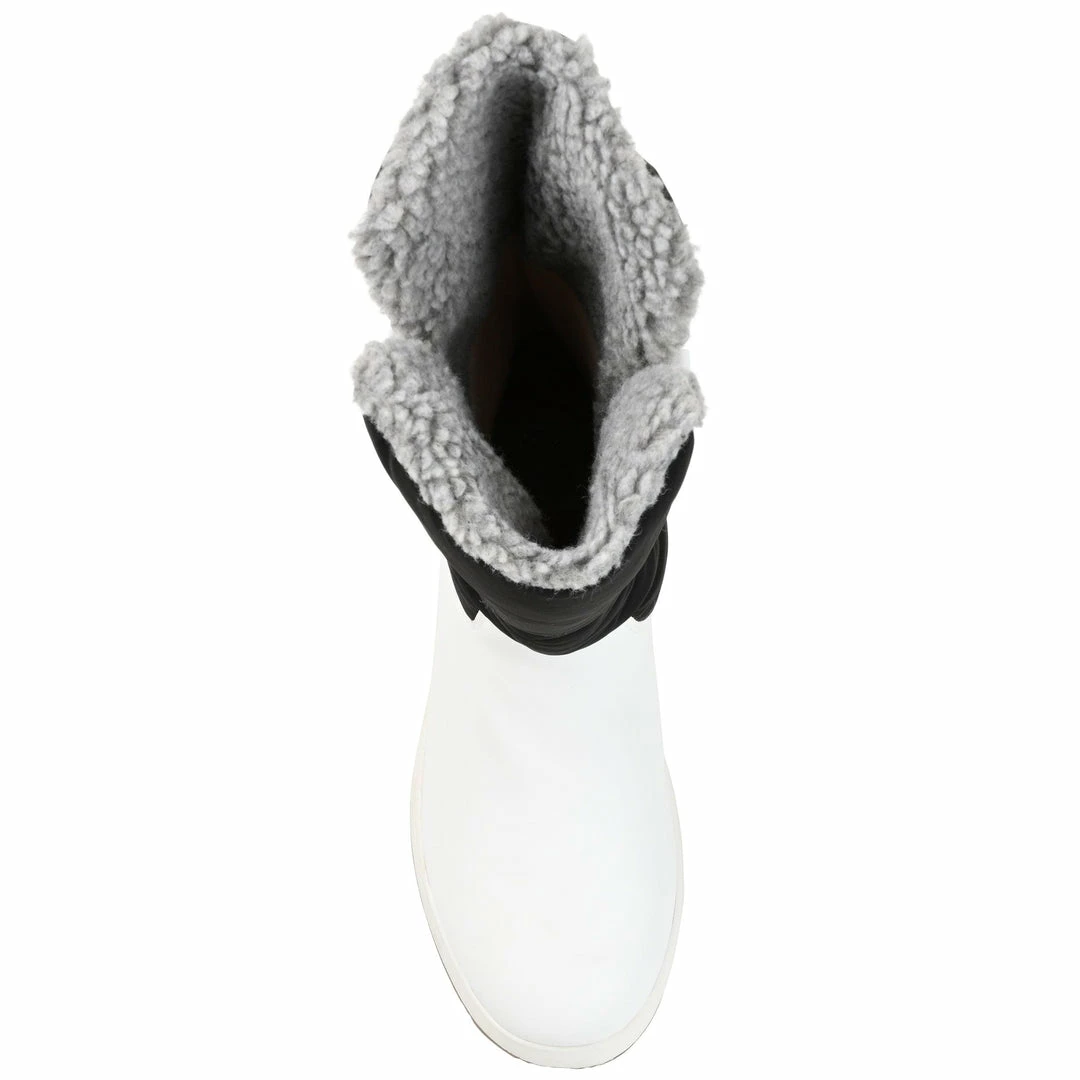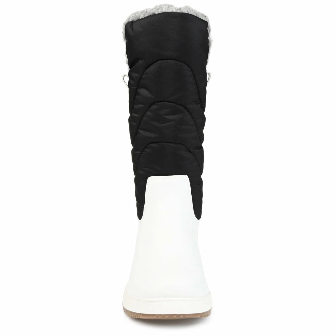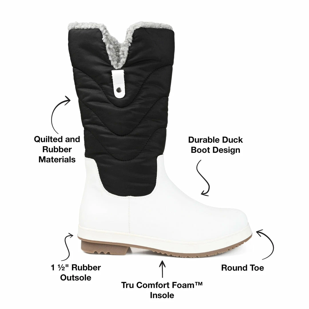 Sport a chic style this winter with this quilted mid-calf boot with a duck toe.