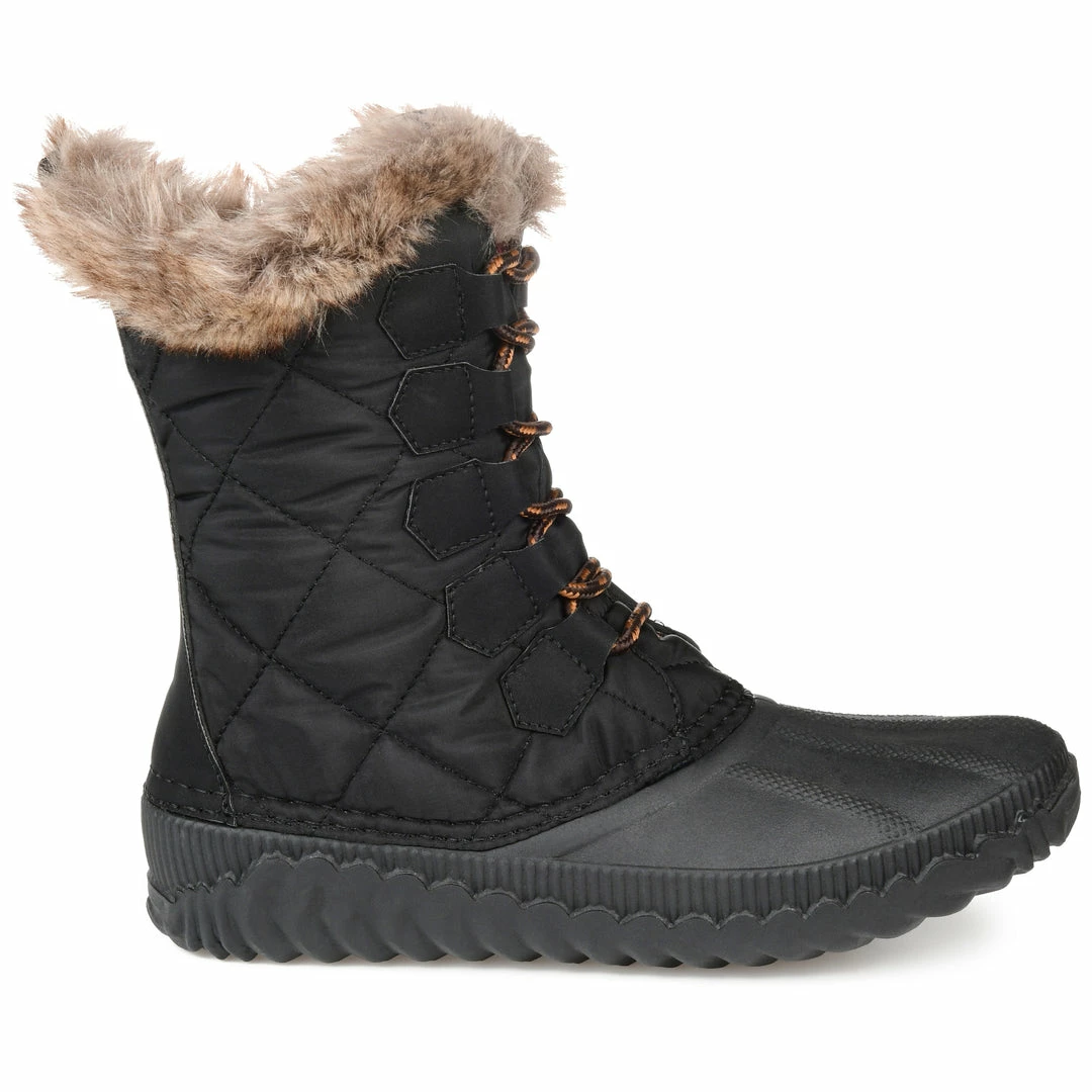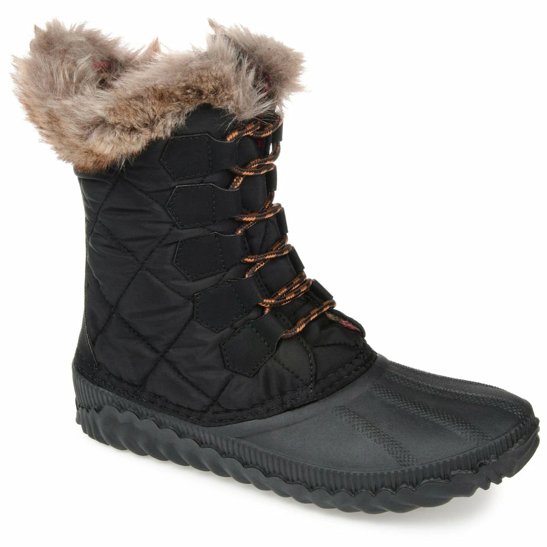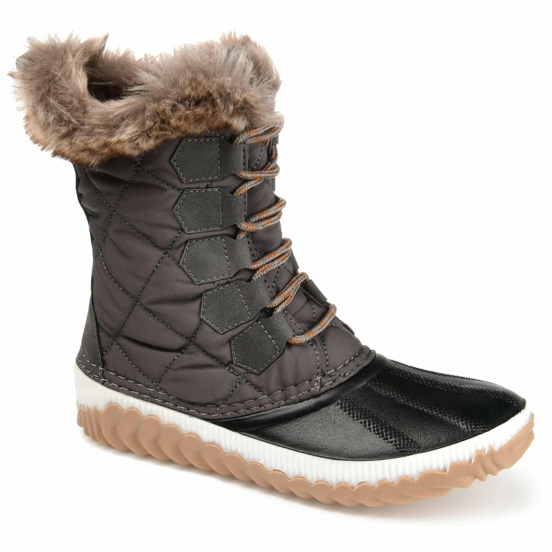 These cozy, comfortable, two-tone duck toe boots are designed to resist stormy weather. Faux fur trim and a 4 mm Tru Comfort Foam™ footbed complete this quilted lace-up boot for a comfortable and foot-hugging fit.