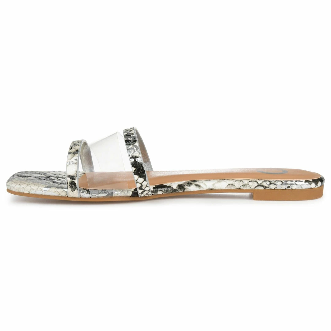 Leave a lasting impression with this square-toe slide topped with a lucite strap trimmed with textured vegan leather. With a soft padded insole and a tiny heel, you’ll be walking with ease.