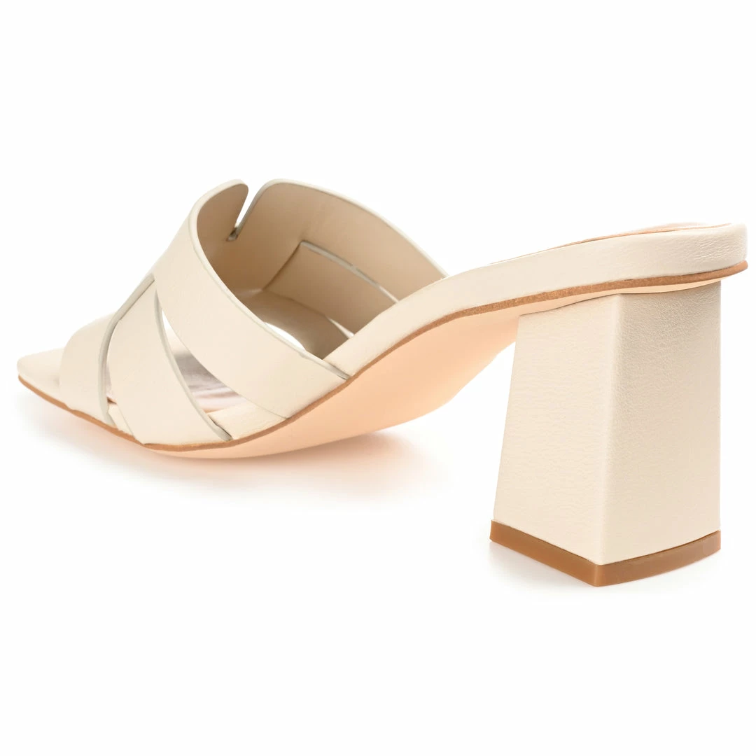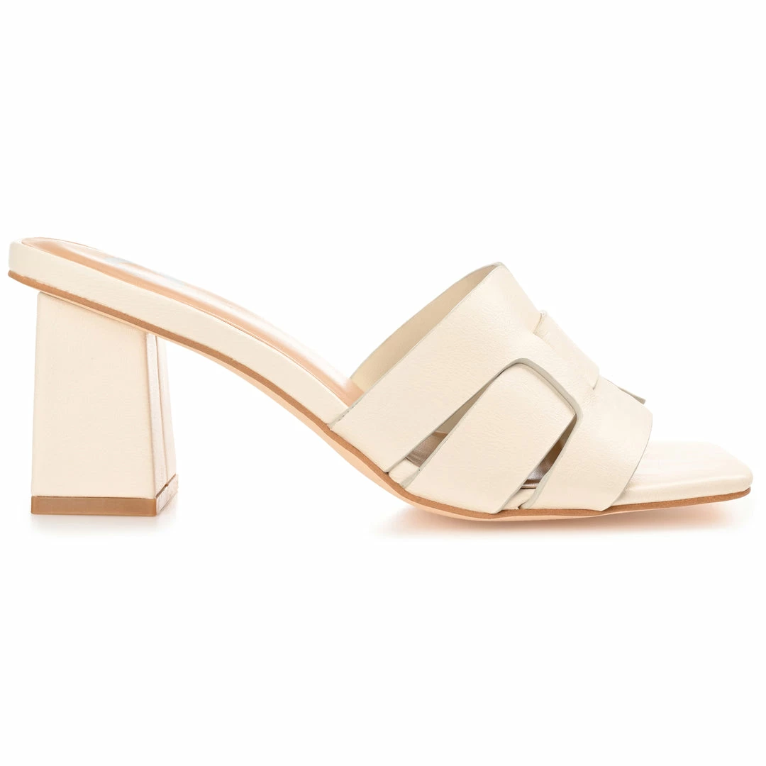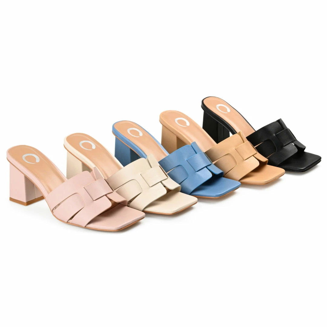 This slide-on heel with an interlocking design at the strap goes great with everything from denim to cocktail dresses.