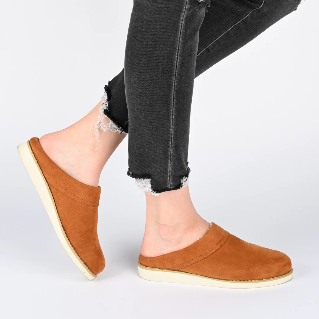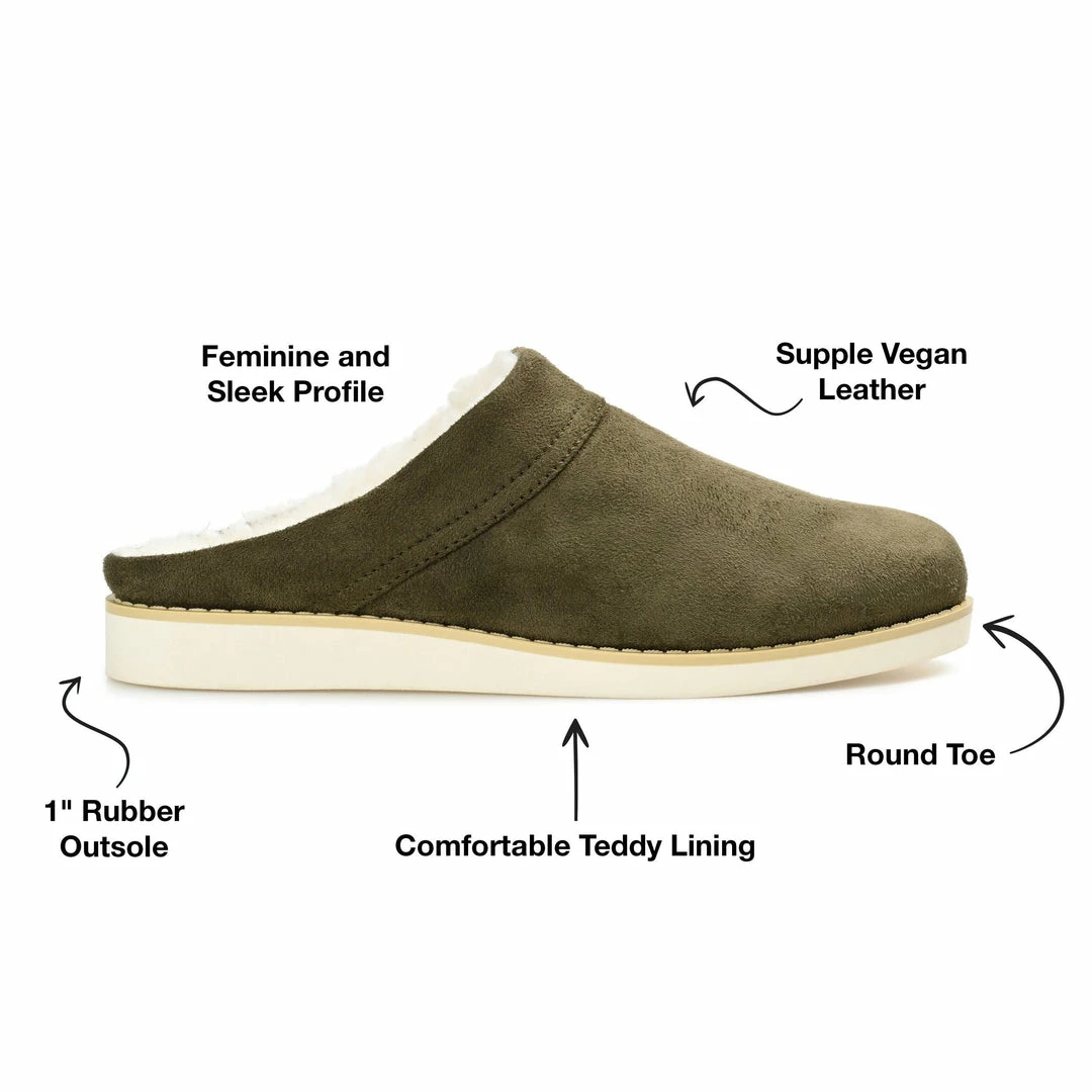 This backless slipper with teddy bear fur lining is easy, simple, and oh-so-comfy.