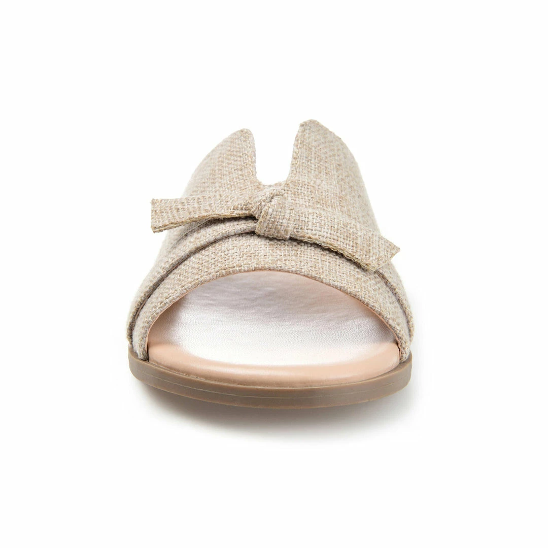 Soak up the sun in this simply sweet slide detailed with a 4 mm Comfort Foamâ„¢ insole, printed fabric uppers, and a darling bow accent.