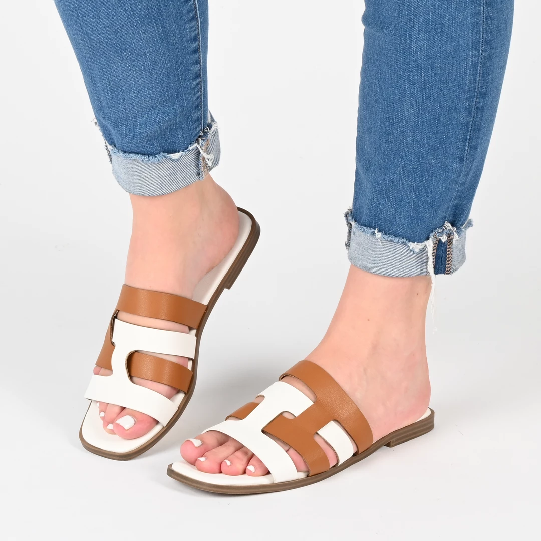 You’ll always feel breezy and light in these two-toned multi-strap slides.