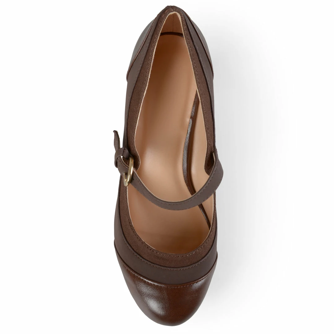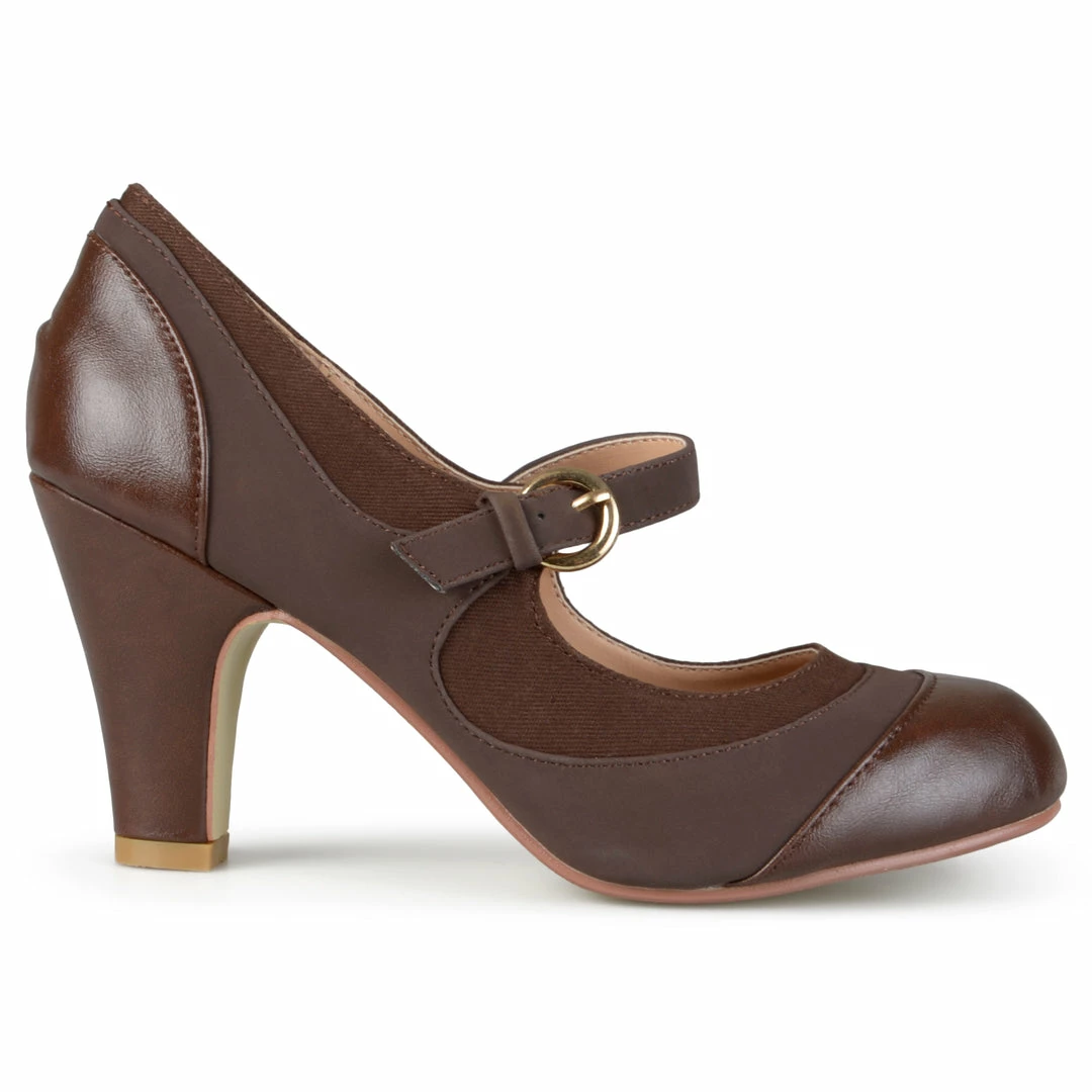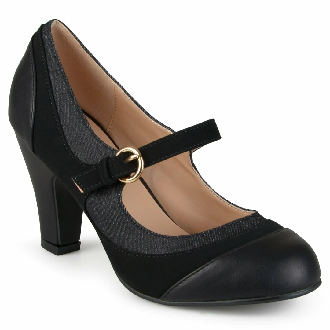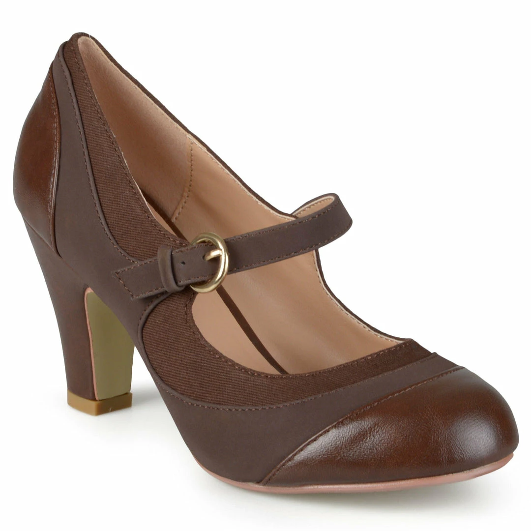 These sophisticated mid-century Mary Jane’s feature premium man-made uppers beautifully contrasted with tweed fabric. Tapered pump heels and a classic round-toe complete the look.