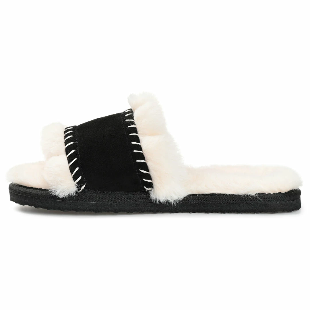 In this faux fur-lined open-toe slipper, you’ll always have sweet dreams.
