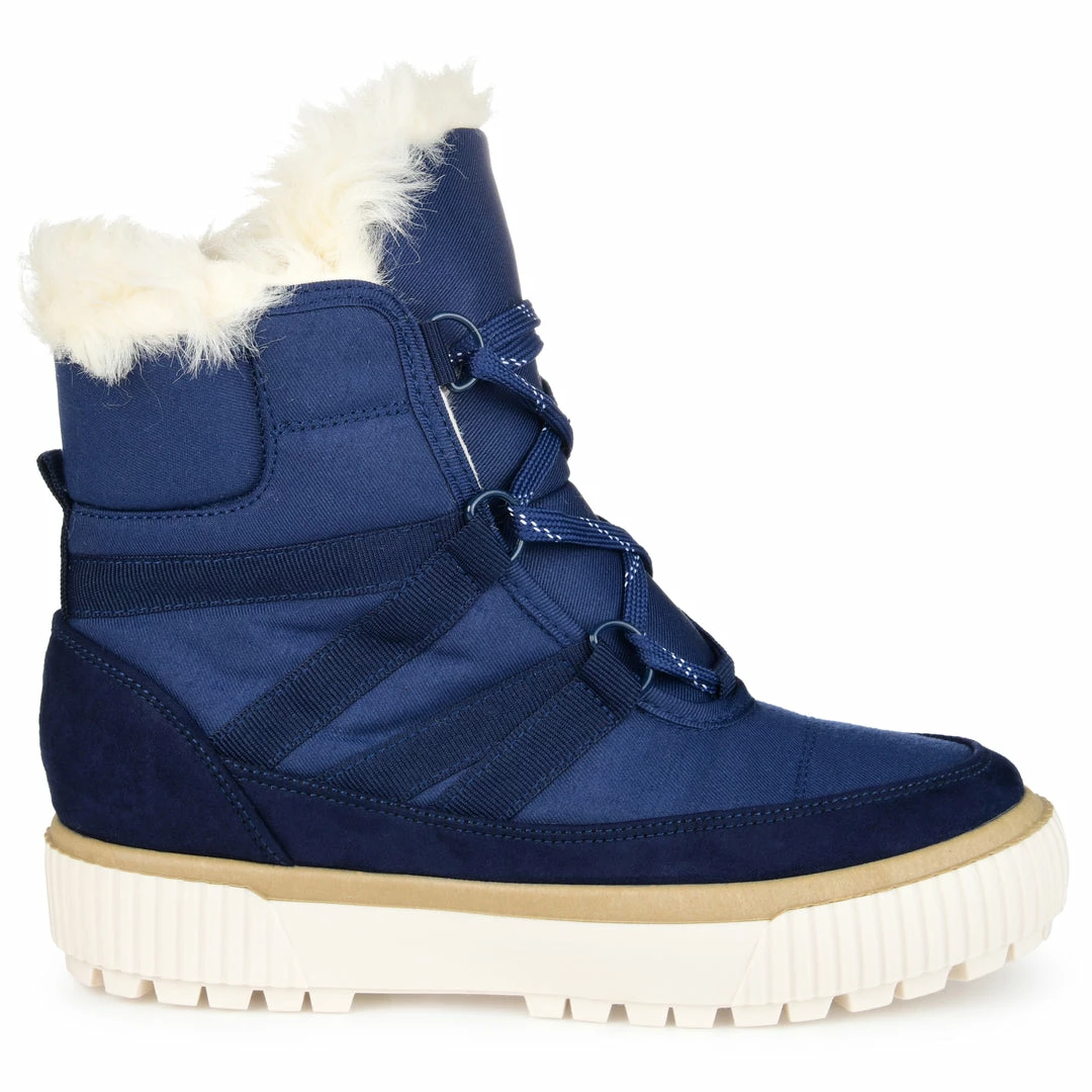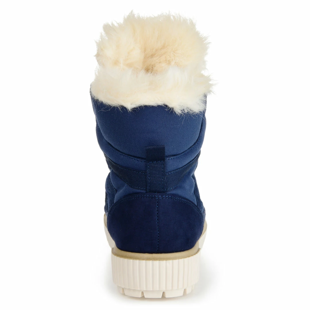 Travel in comfort in this cold-weather boot featuring a treaded sole and warm, water-resistant fabric uppers detailed with vegan leather. Lux synthetic fur trim and our signature 4 mm Tru Comfort Foam™ footbed complete the look for a snug and cozy fit.