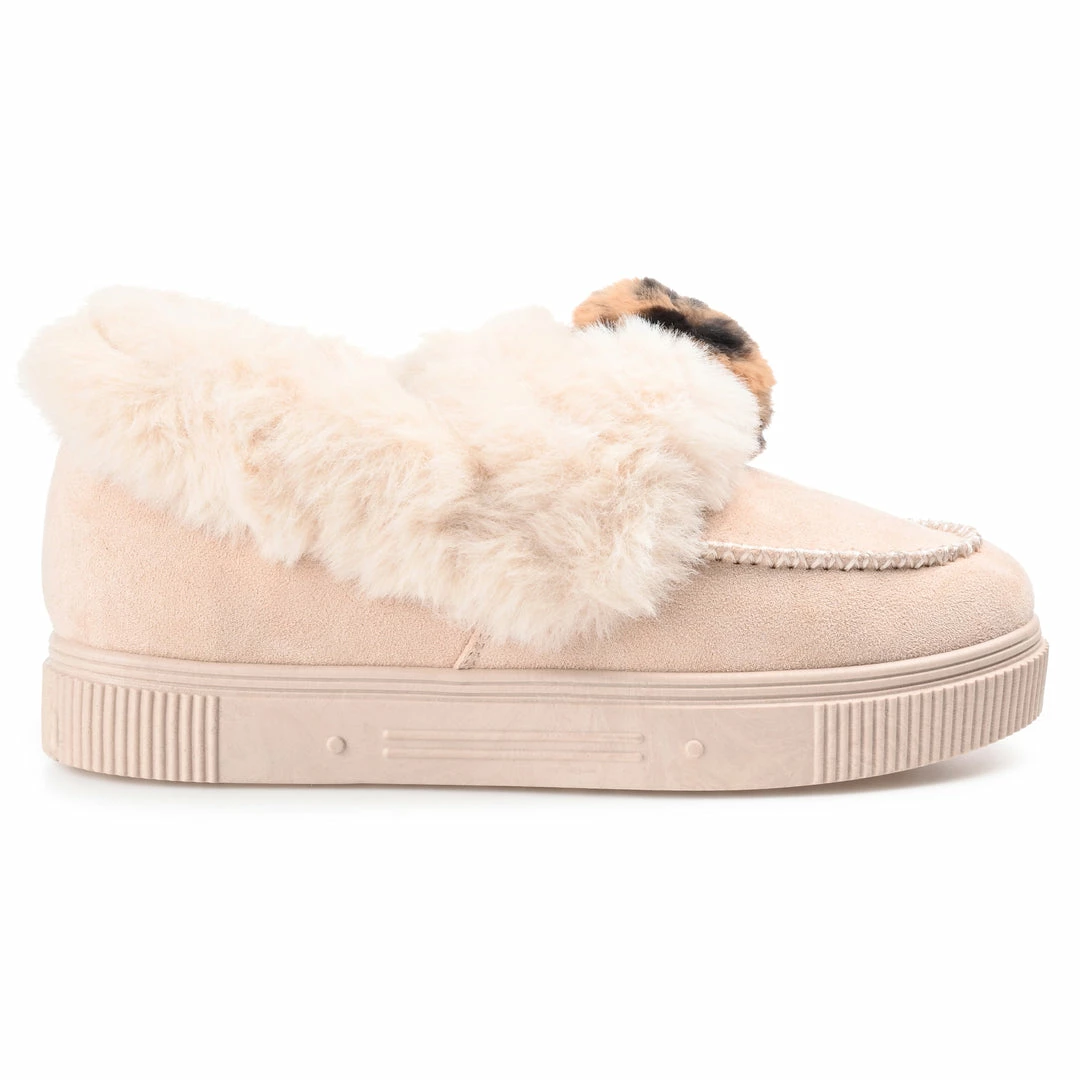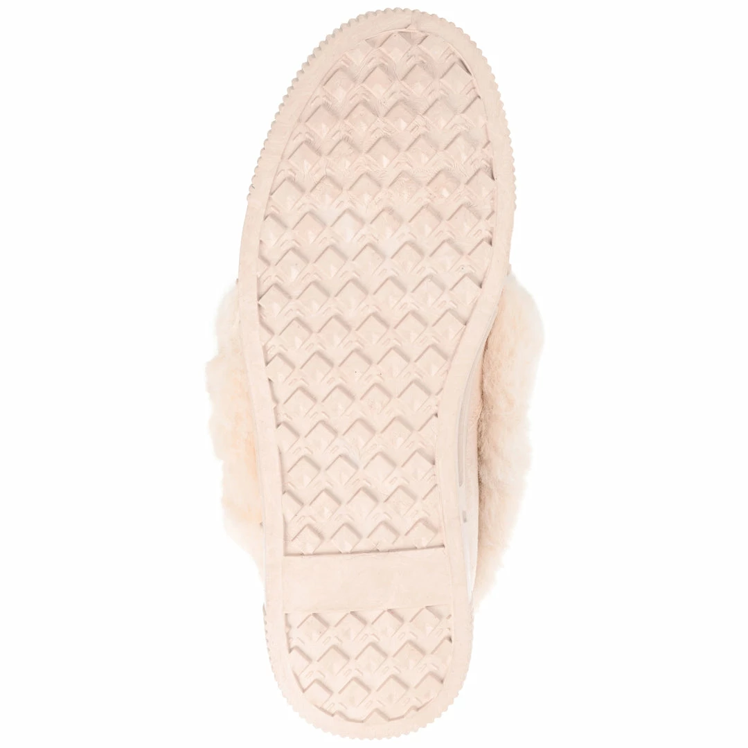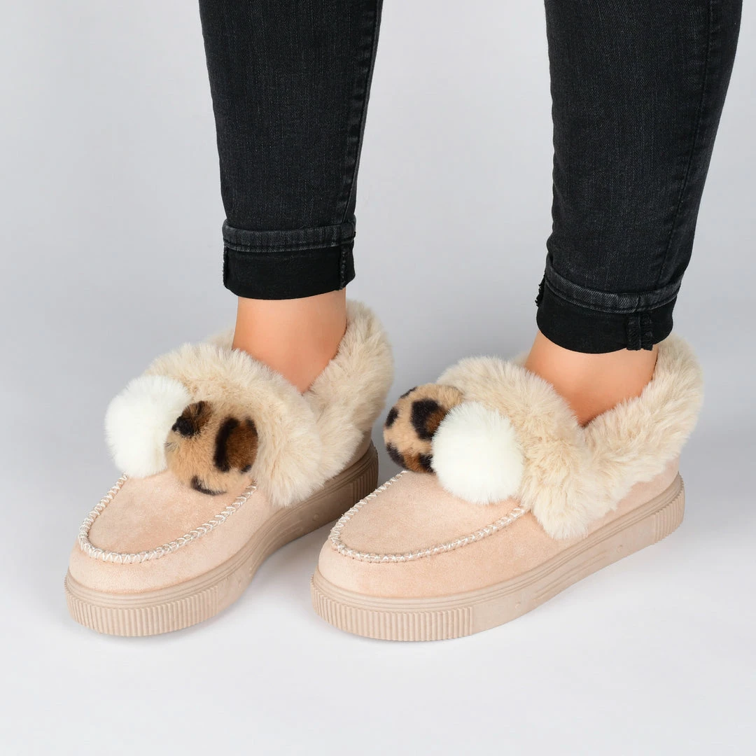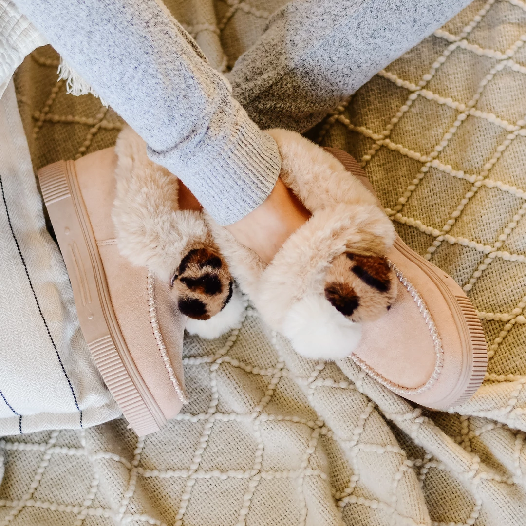 Girls night in? This plush fur-lined slipper with a cushioned footbed is sure to be your favorite companion for a Netflix binge. Whipstitch details and pom-pom accents top this vegan suede slipper for a whimsical finish.