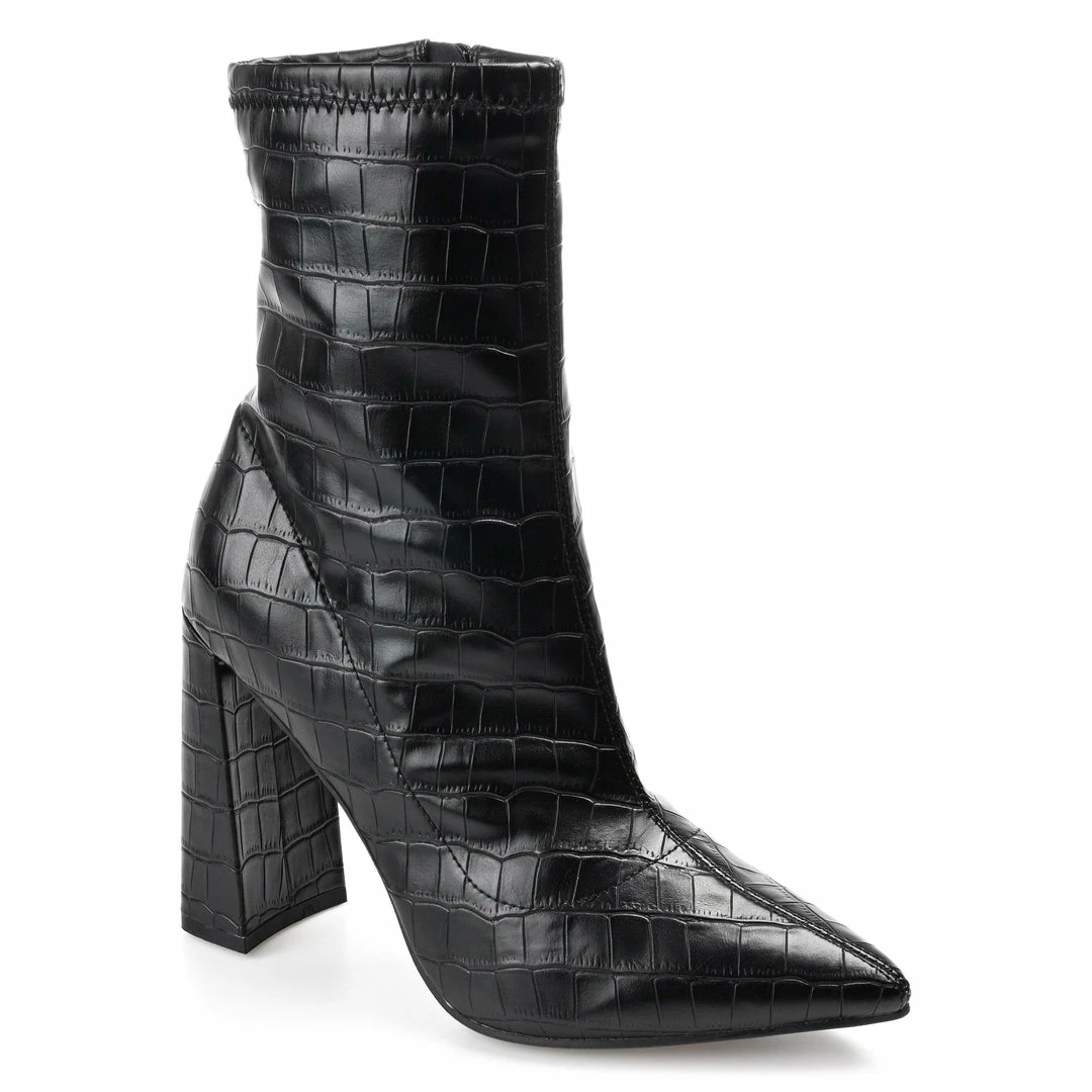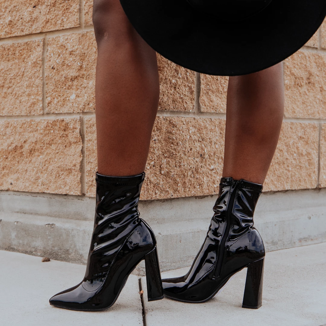 Queue the music and slip on these glammed-up pointed-toe booties! This throw-back 90s look is ready to go where ever the party may take you.