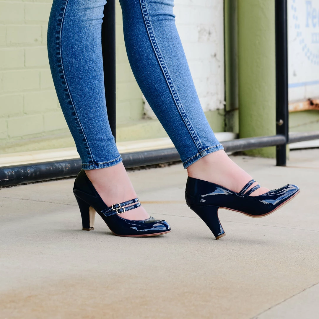 An eternally trendy look, the round-toe Mary Jane pump, finished with premium faux leather uppers shaped into a wide width for a custom fit.